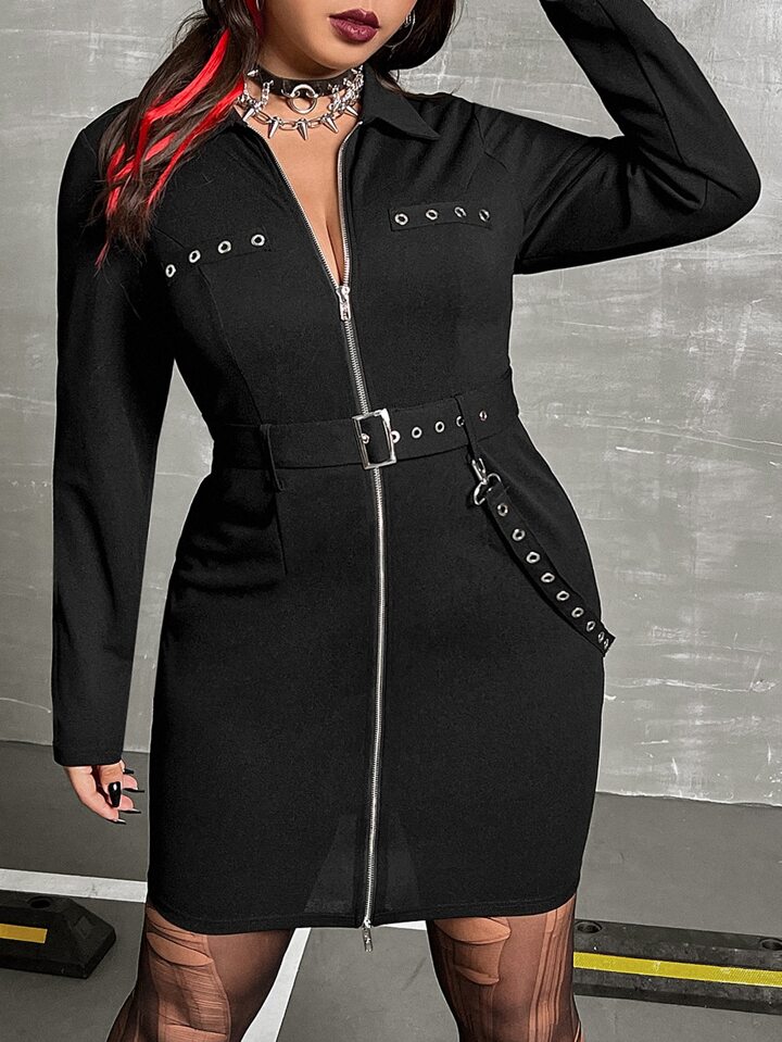 Figurbetontes Kleid mit Reißverschluss, Gürtel,