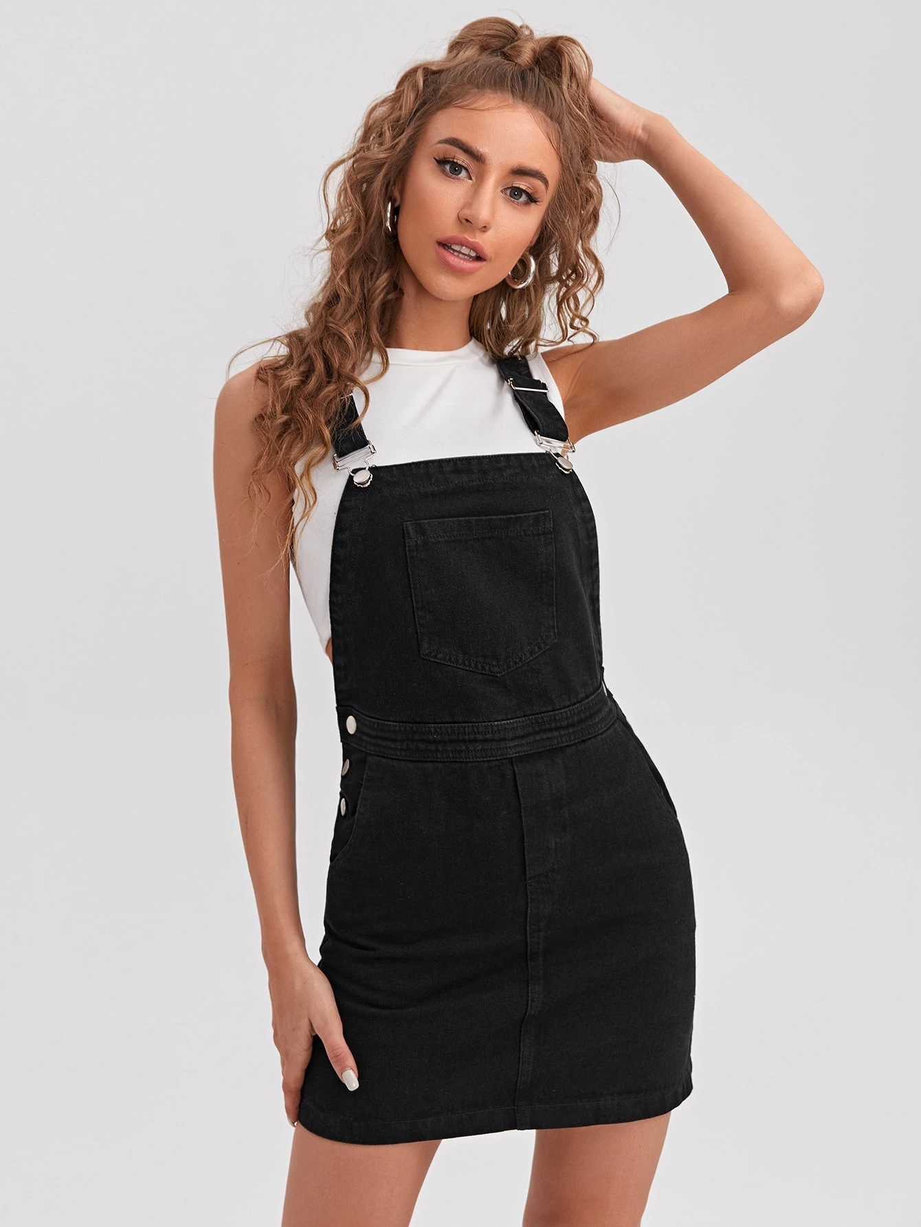 Knöpfe Einfarbig Preppy Jeans Kleider