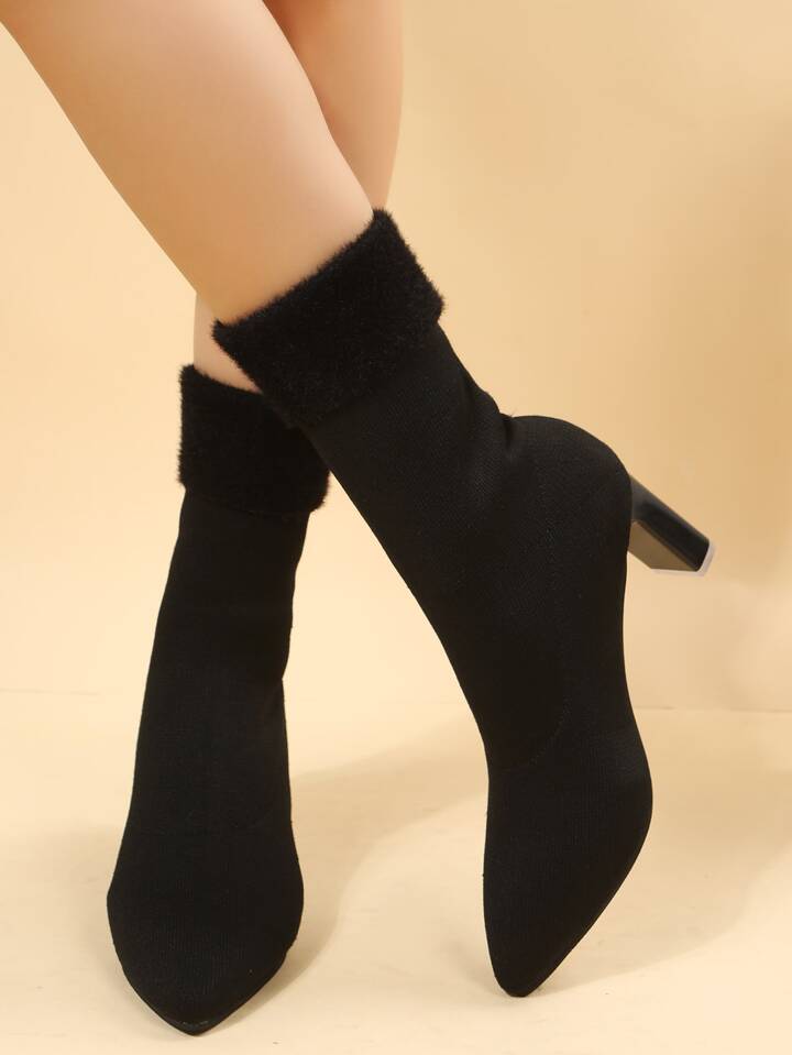 Socken-Stiefel mit spitzer Zehenpartie, klobigem Absatz