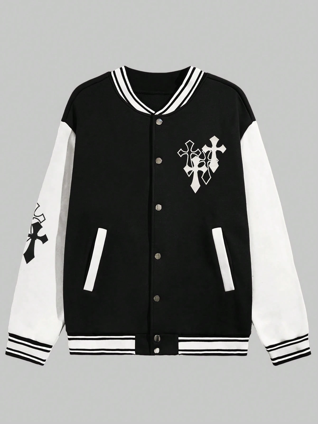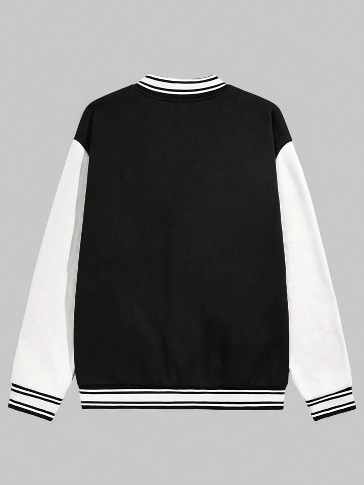 Prep Männer College Jacke mit Kreuz, Grafik, Streifen Farbblock, Drop Shoulder