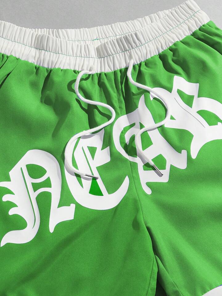 Prep Männer Shorts mit Buchstaben Grafik, Tunnelzug, Kontrast Saum,