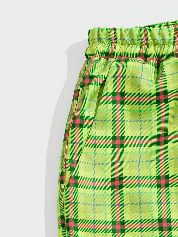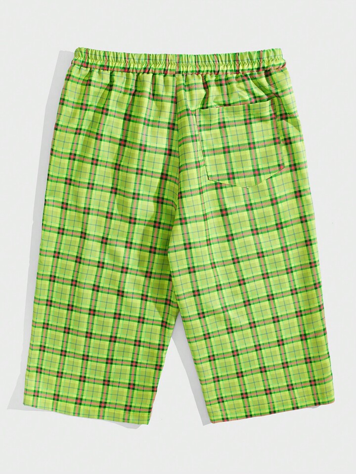 Prep Männer Shorts mit Plaid Muster, Abzeichen, Flicken, Tunnelzug,