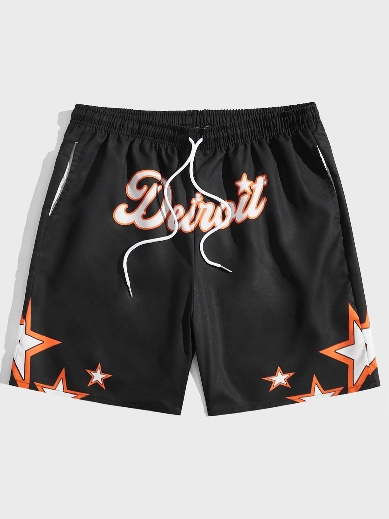 Prep Männer Shorts mit Stern Buchstaben Grafik, Tunnelzug