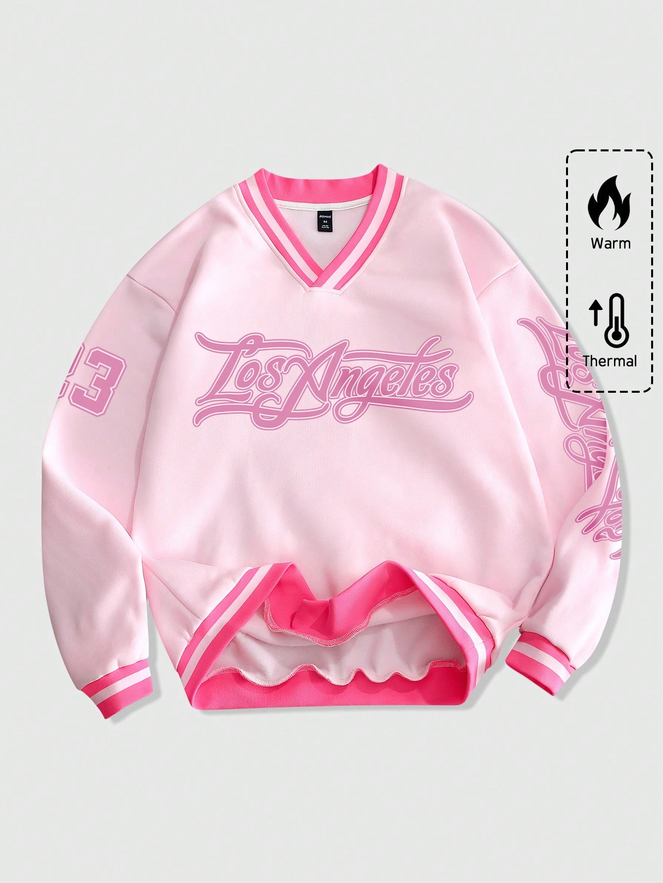 Prep Herren Lässig Mode Bedruckter V-Ausschnitt Sweatshirt