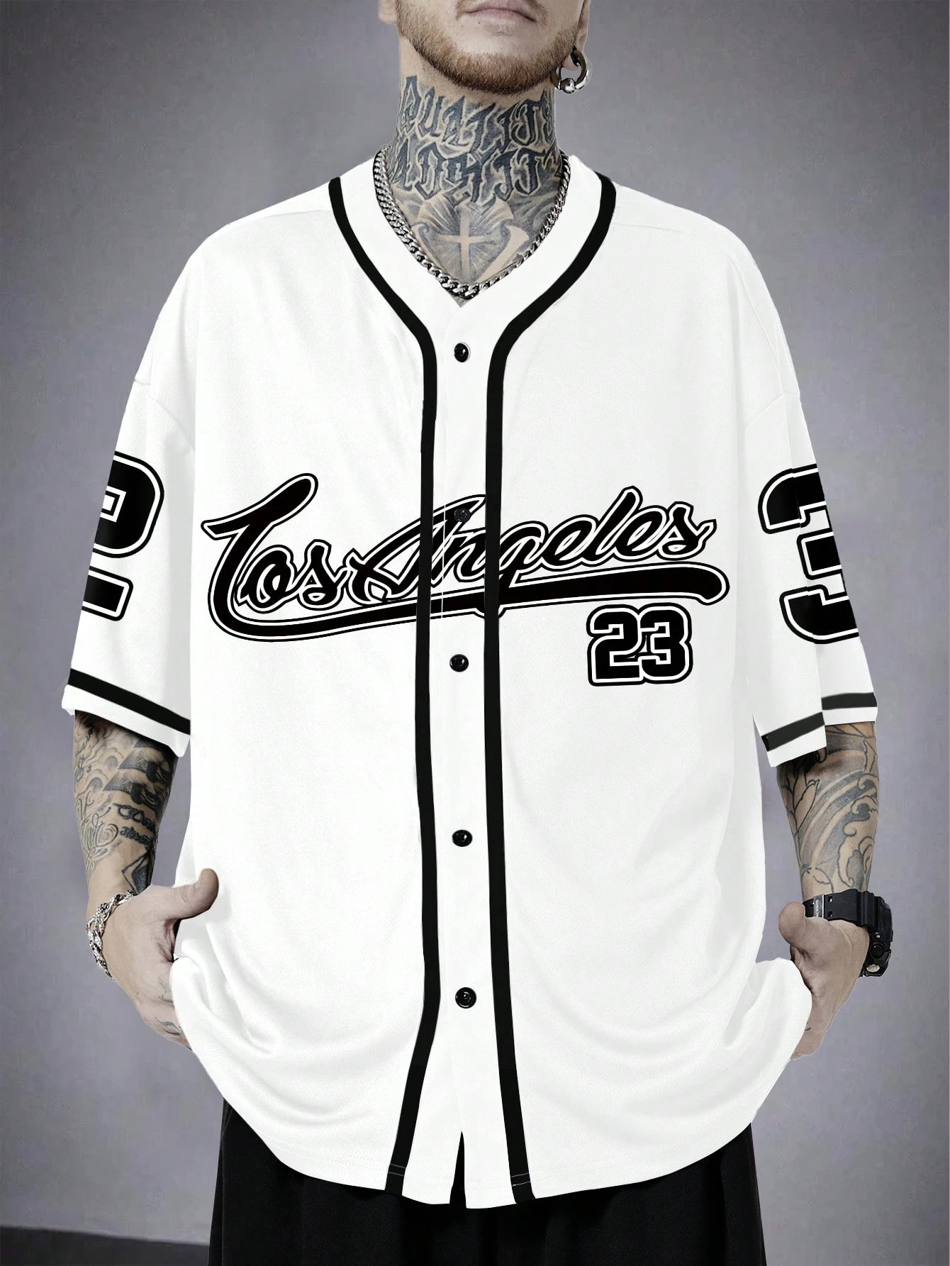 Prep Herren Lässiges Mode Street Daily Pendler Buchstaben & Nummer Muster Kontrastpaspel Loose Fit Hemd, Sommer
