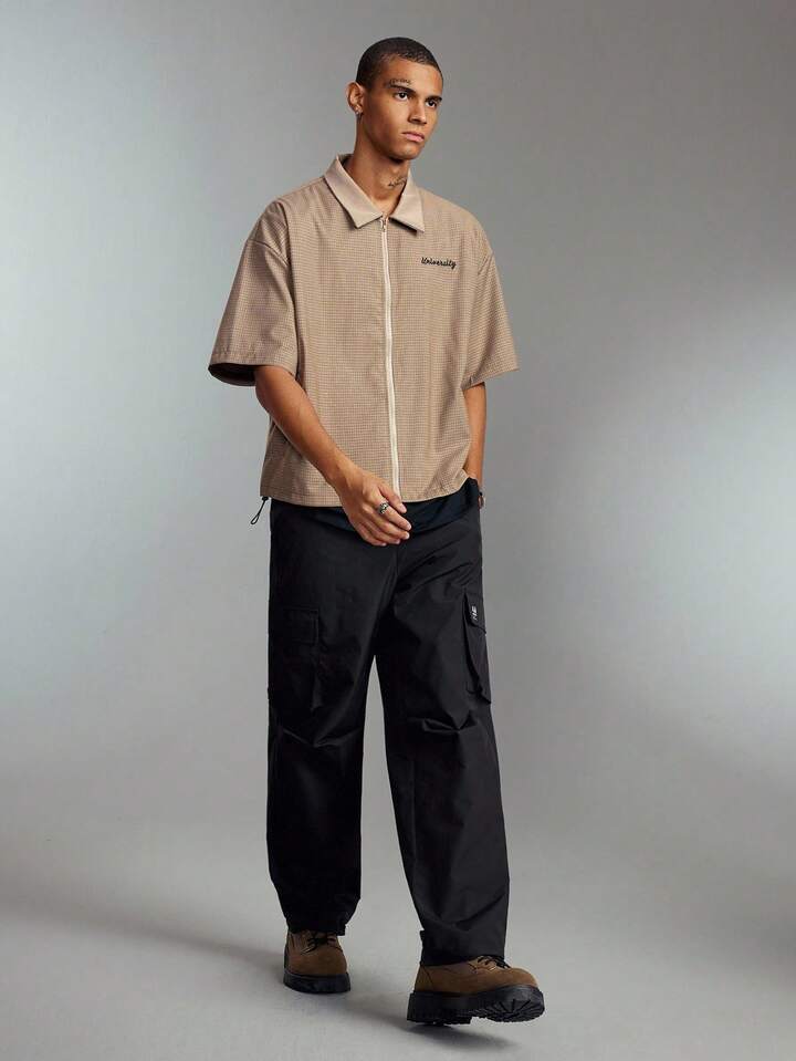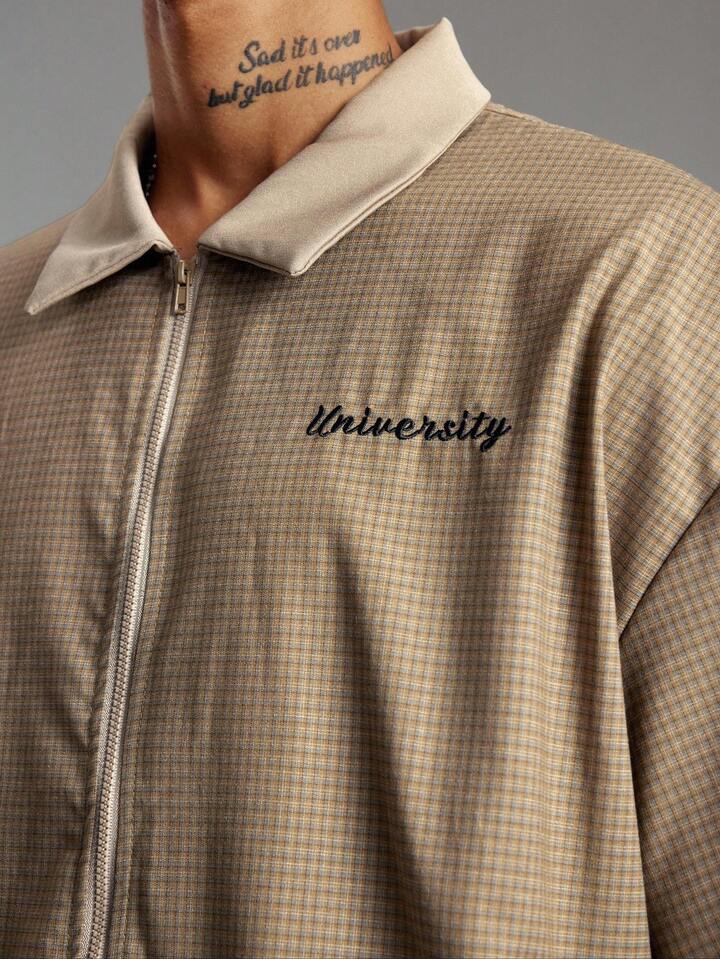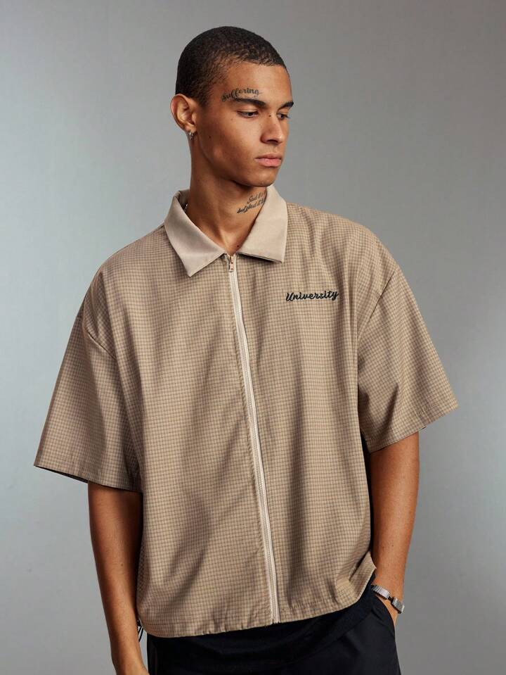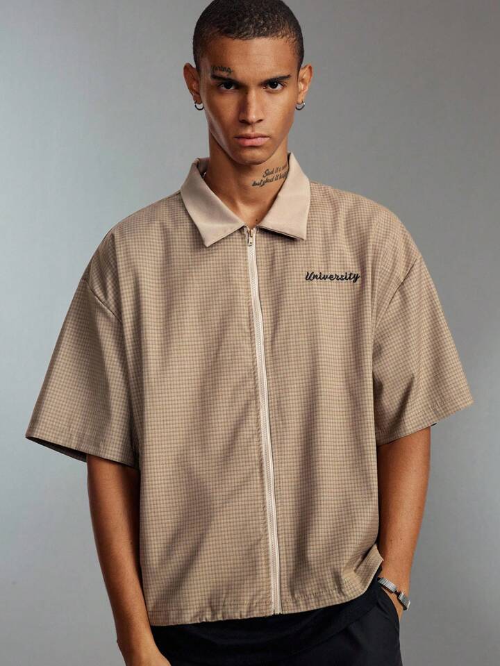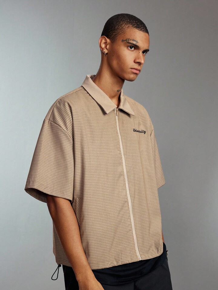 Prep Herren Lässiges kariertes Reißverschluss-Hemd, College-Stil
