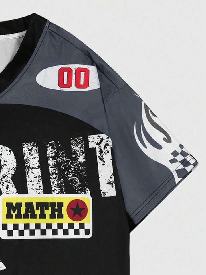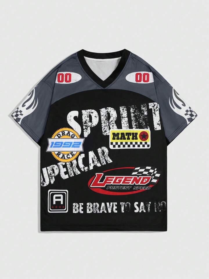 Prep Herren Lässig T-Shirt mit Buchstaben-Muster V-Ausschnitt Kurzarm Sport