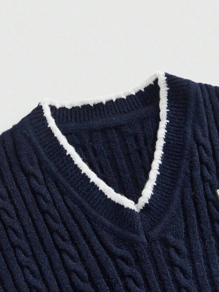 Prep Herren College-Stil Zopfstrick Pullunder mit gestickten Details