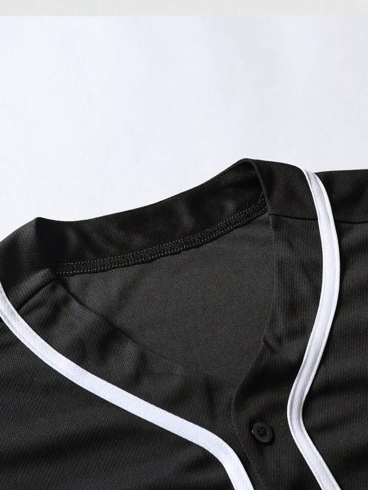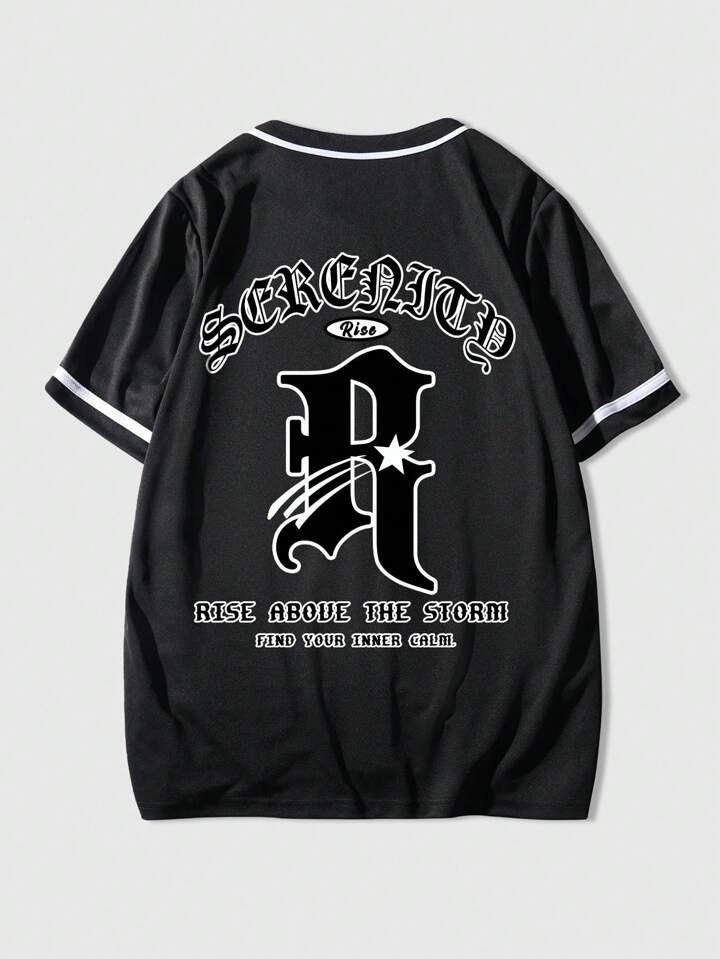 Prep Herren Farbblock Rundhals Kurzarm Buchstaben Muster Lässig Baseball Top