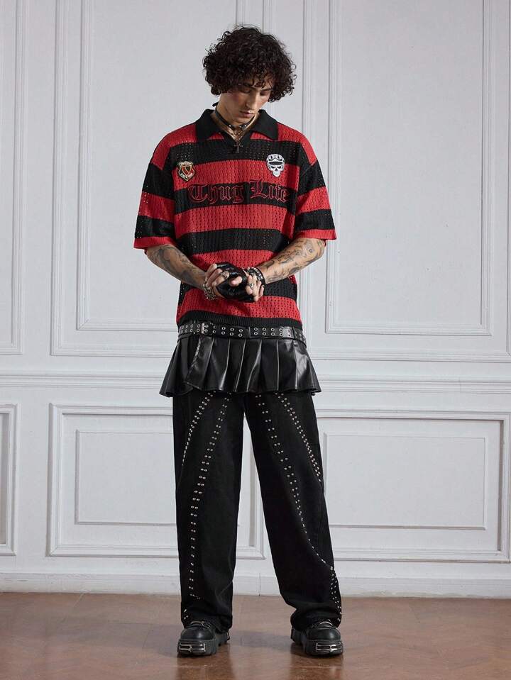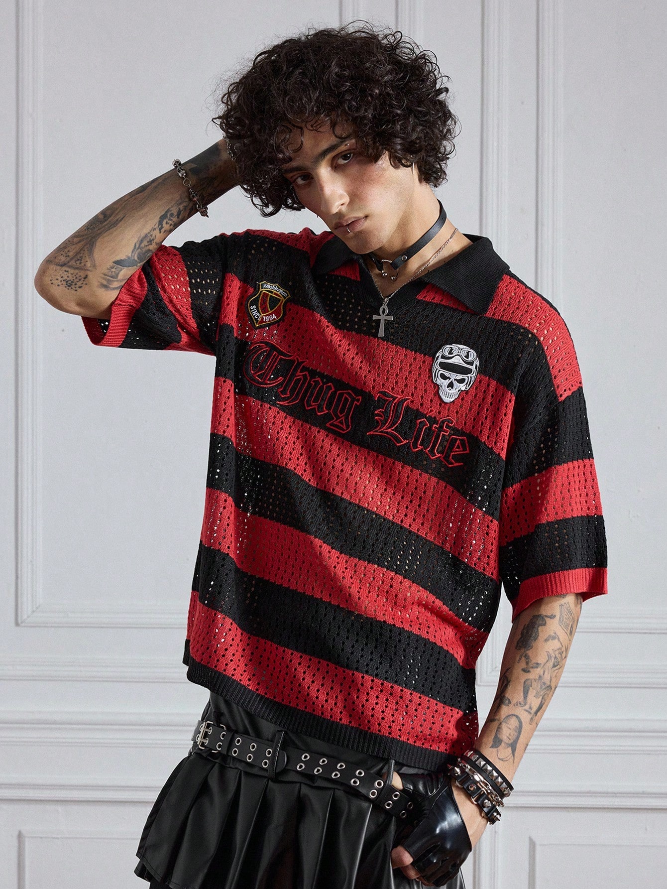 Prep Männer Strickpullover mit Kontraststreifen, Cut Out