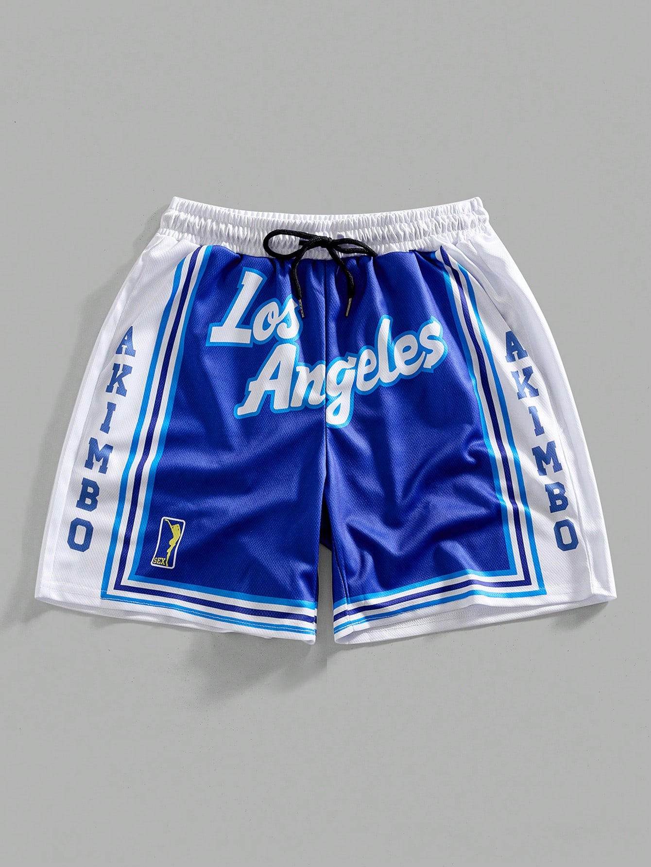 Prep Herren Kontrast Streifen & Buchstaben Muster Schrägtasche Basketball Sport Shorts