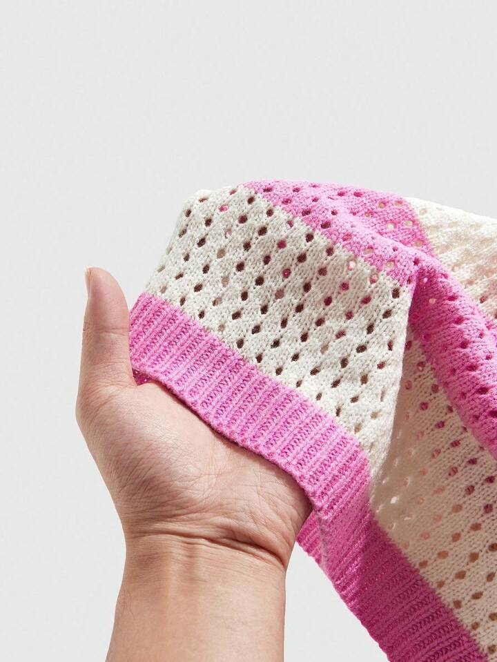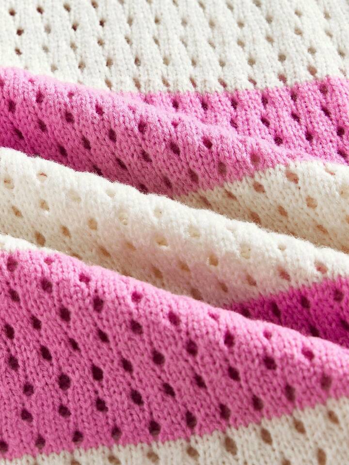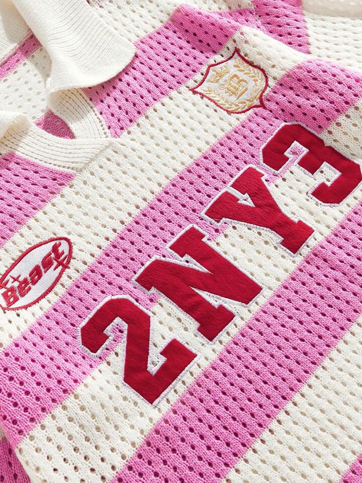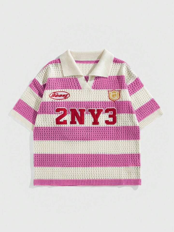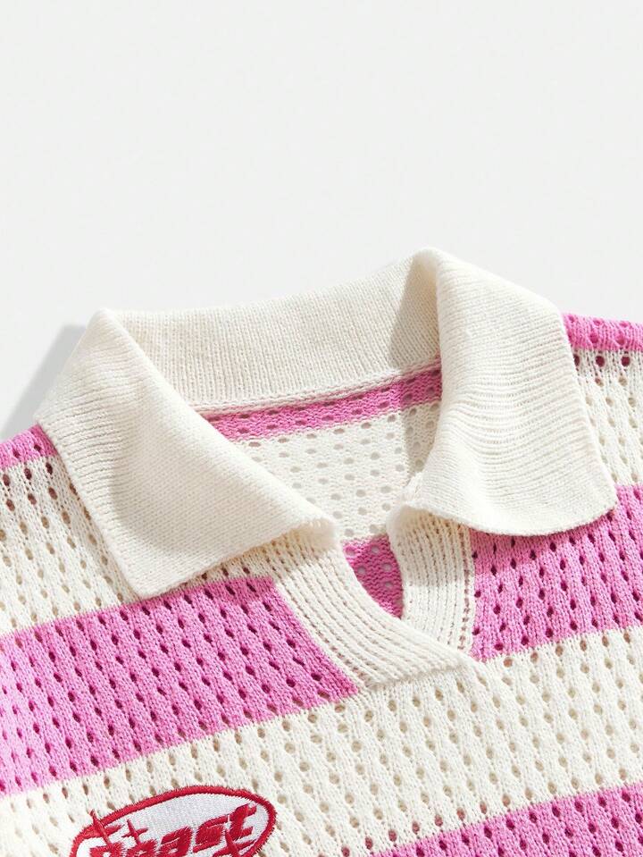 Prep Herren Mode Street Stickerei Muster Kontrast Streifen V-Ausschnitt Drop-Shoulder Loose Cut Out Strickpullover