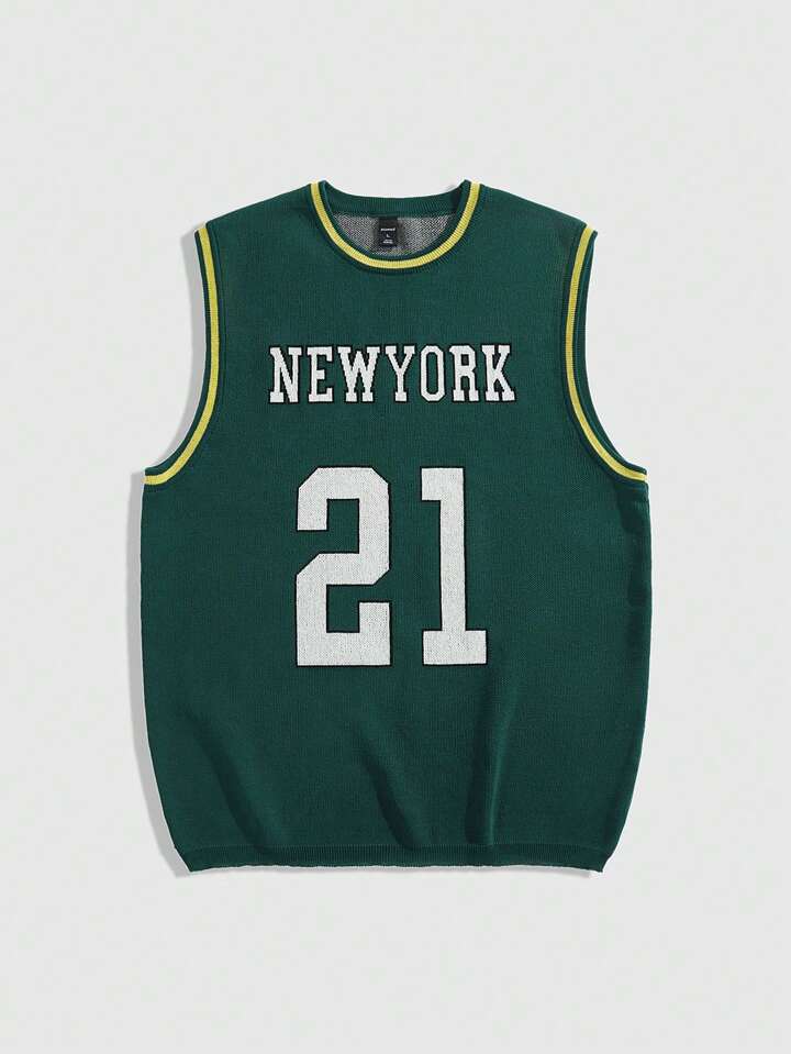 Prep Herren Digital Muster Rundhals ärmelloses Basketball Sport Strickoberteil