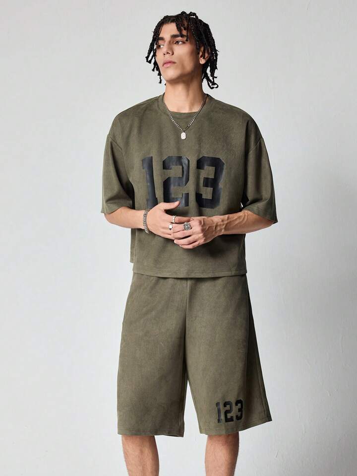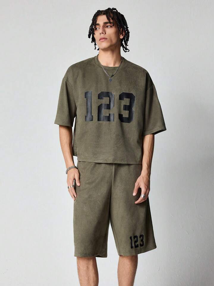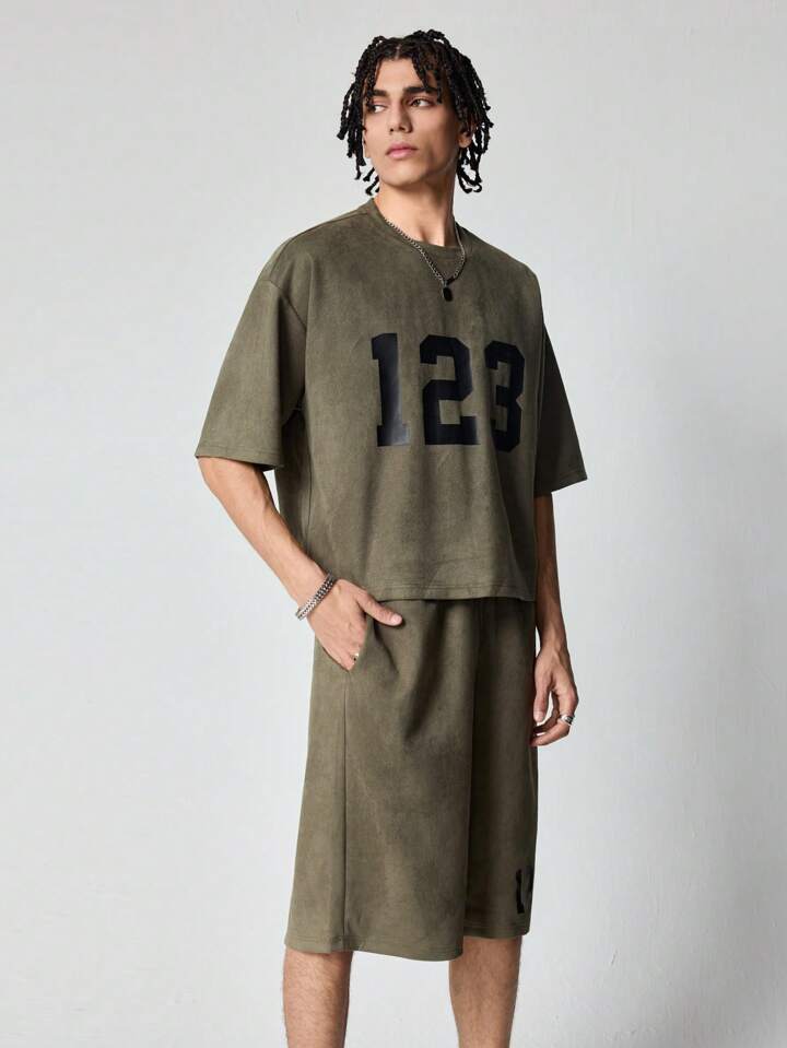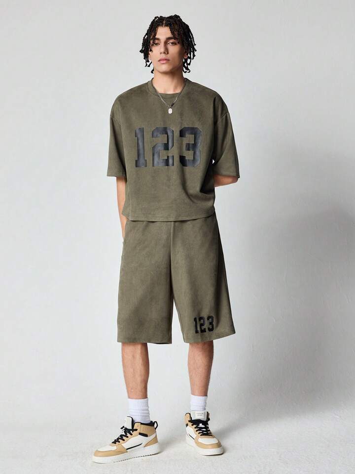 Prep Herren Lässig Set aus T-Shirt mit Zahlen Muster und Shorts