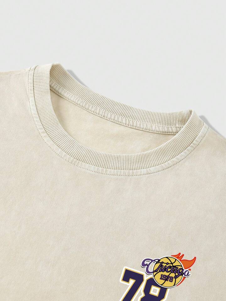 Prep Herren Rundhals Kurzarm Lässig T-Shirt mit Buchstaben- und Basketball-Muster