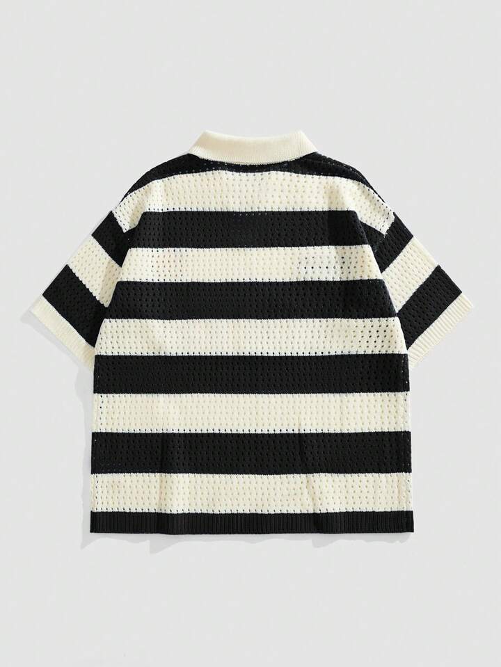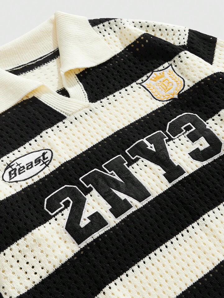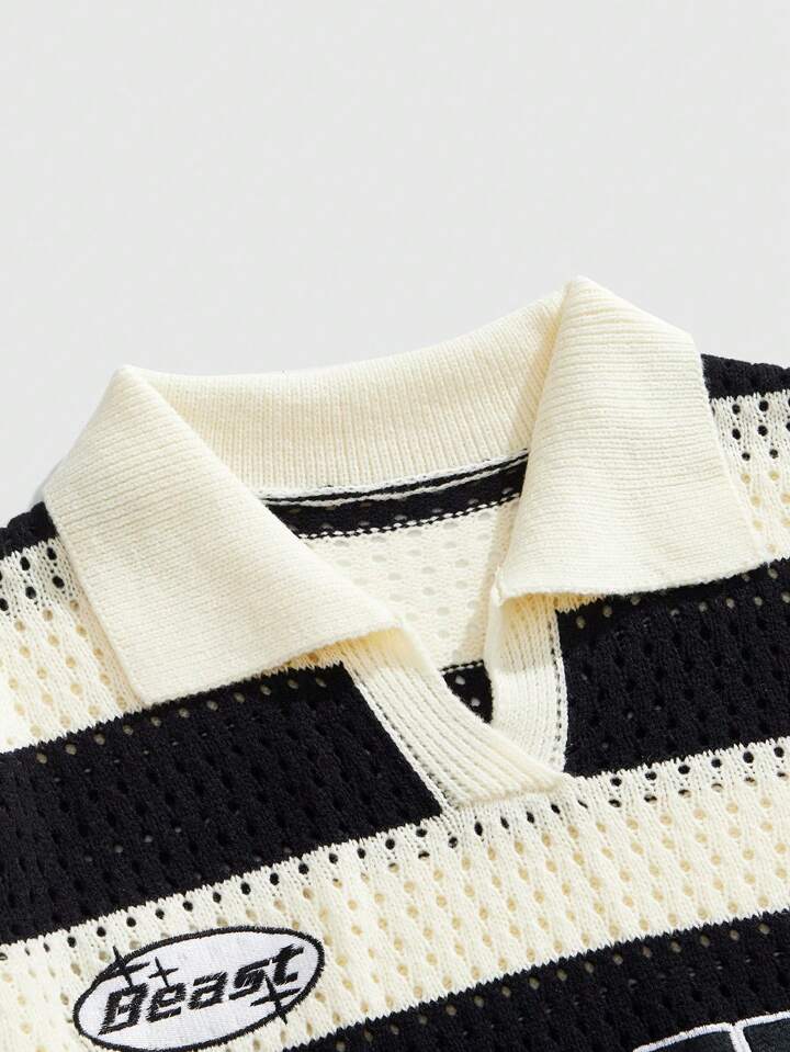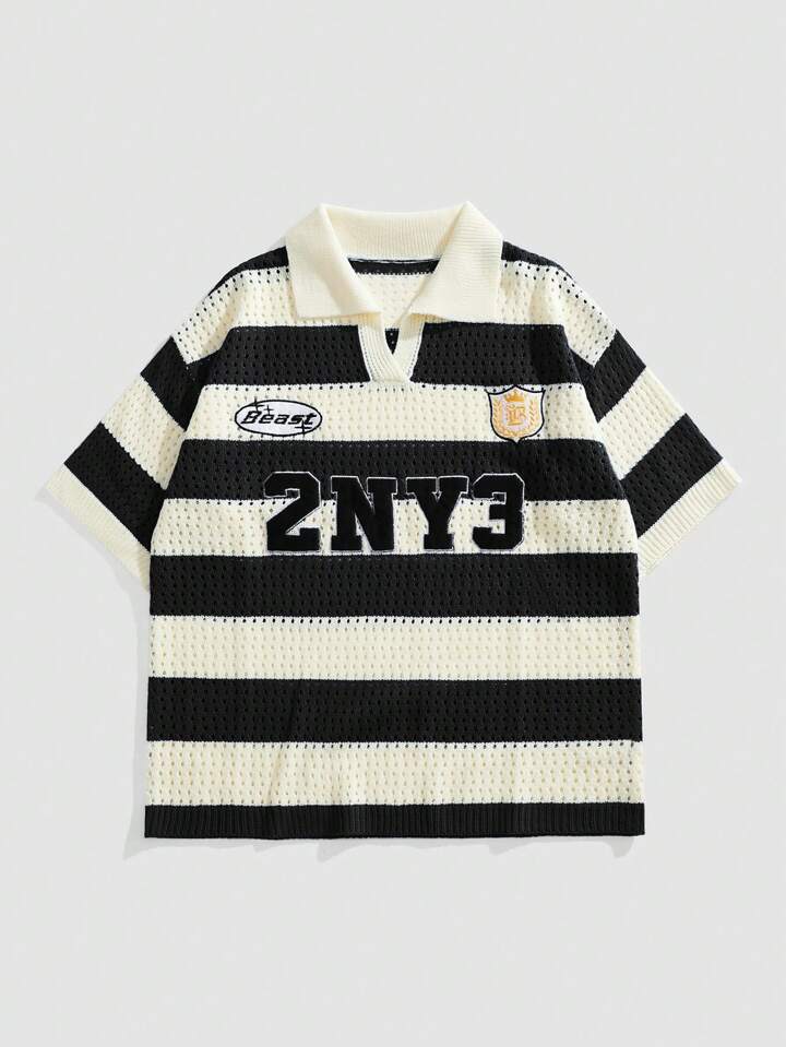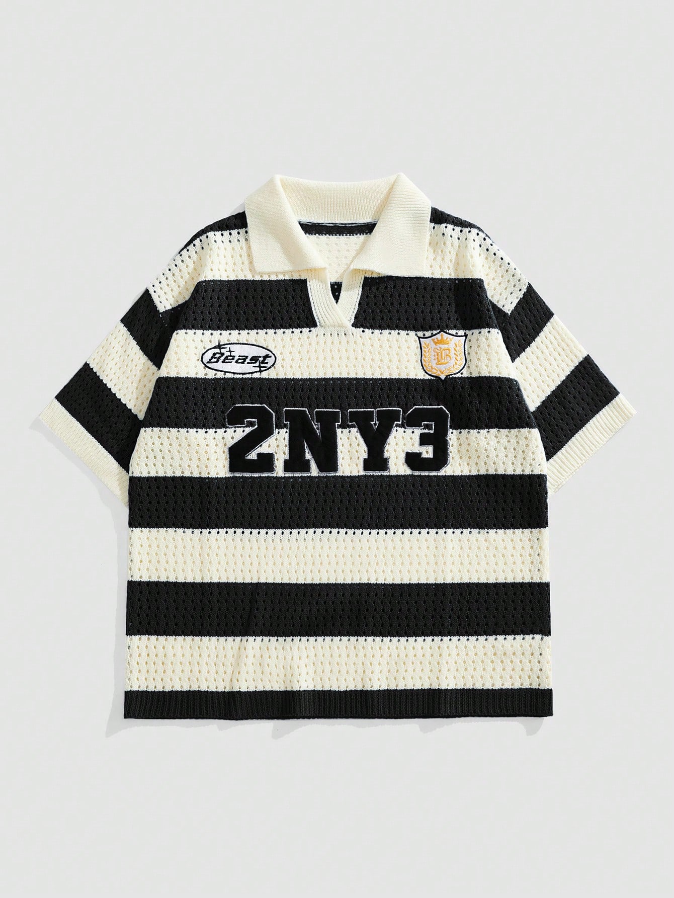 Prep Herren Polo Shirt mit Buchstaben Streifen Design in Jacquard-Strick, Kurzarm