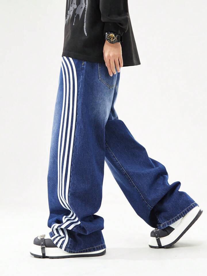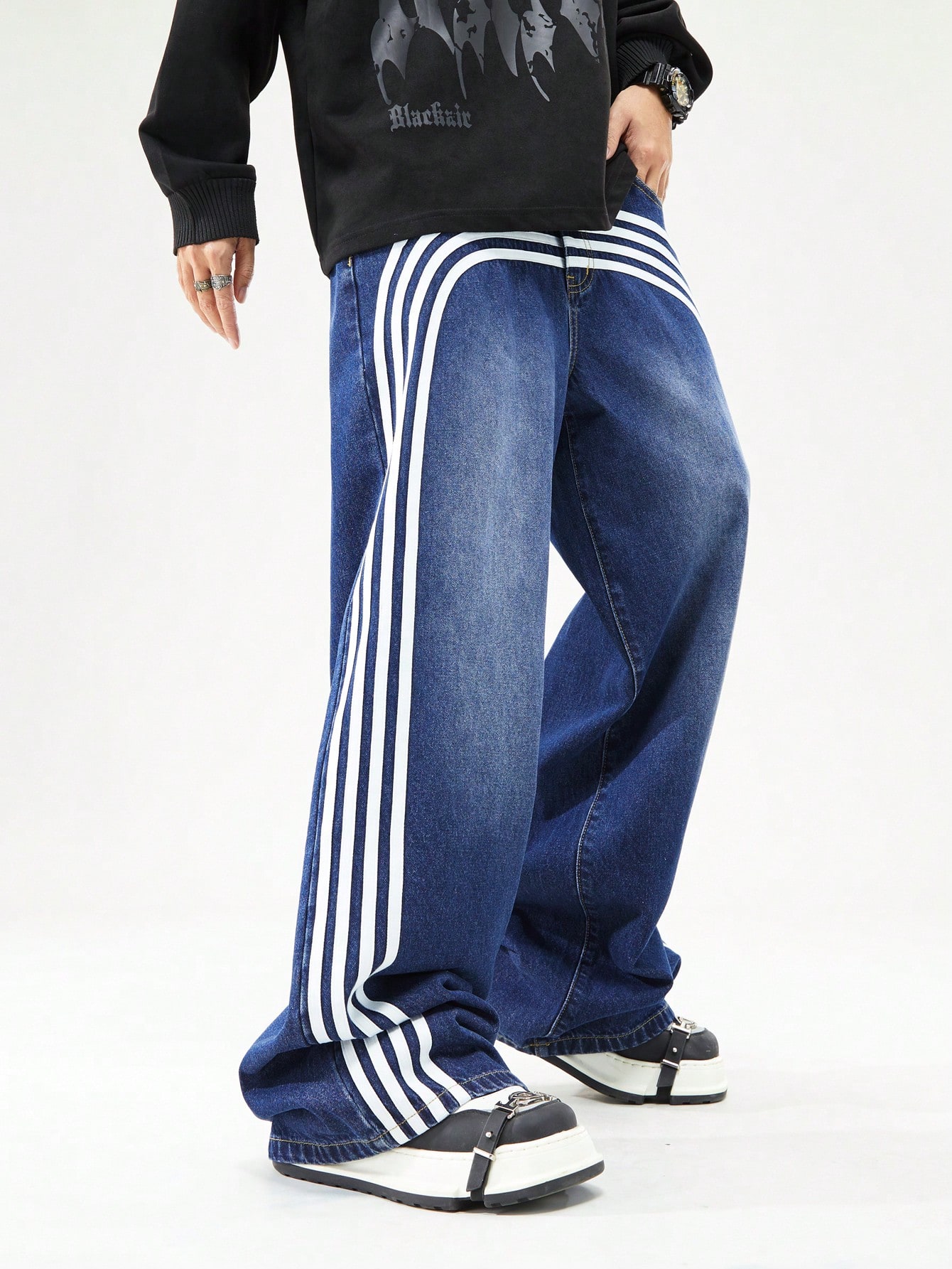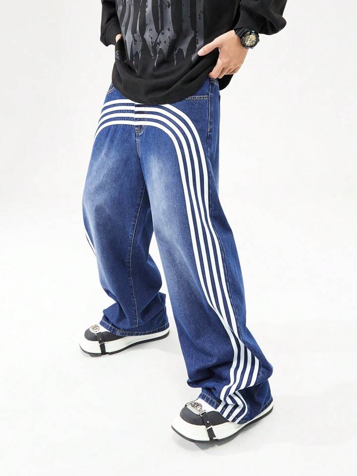 Prep Herren Loose Fit Lässig gestreifte Taschen Schlaghose Jeans