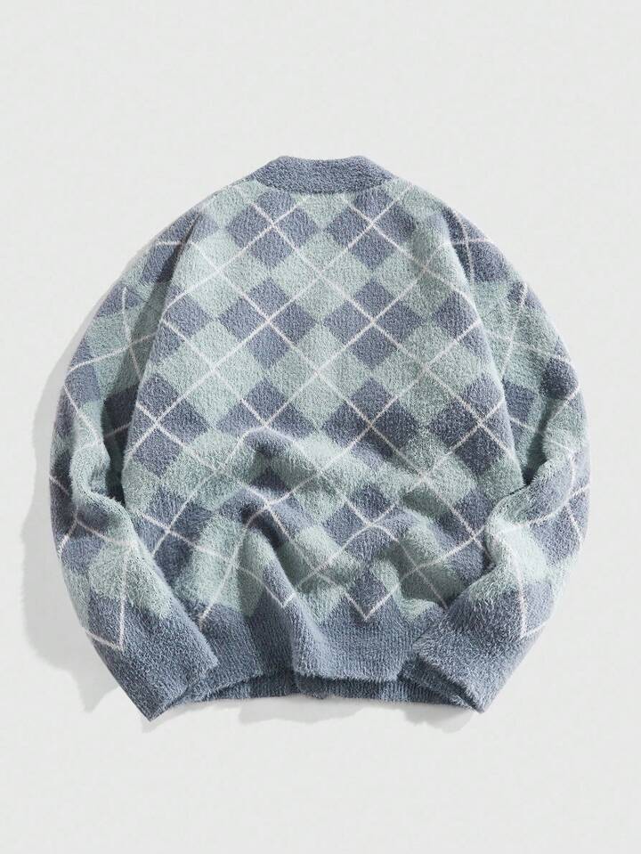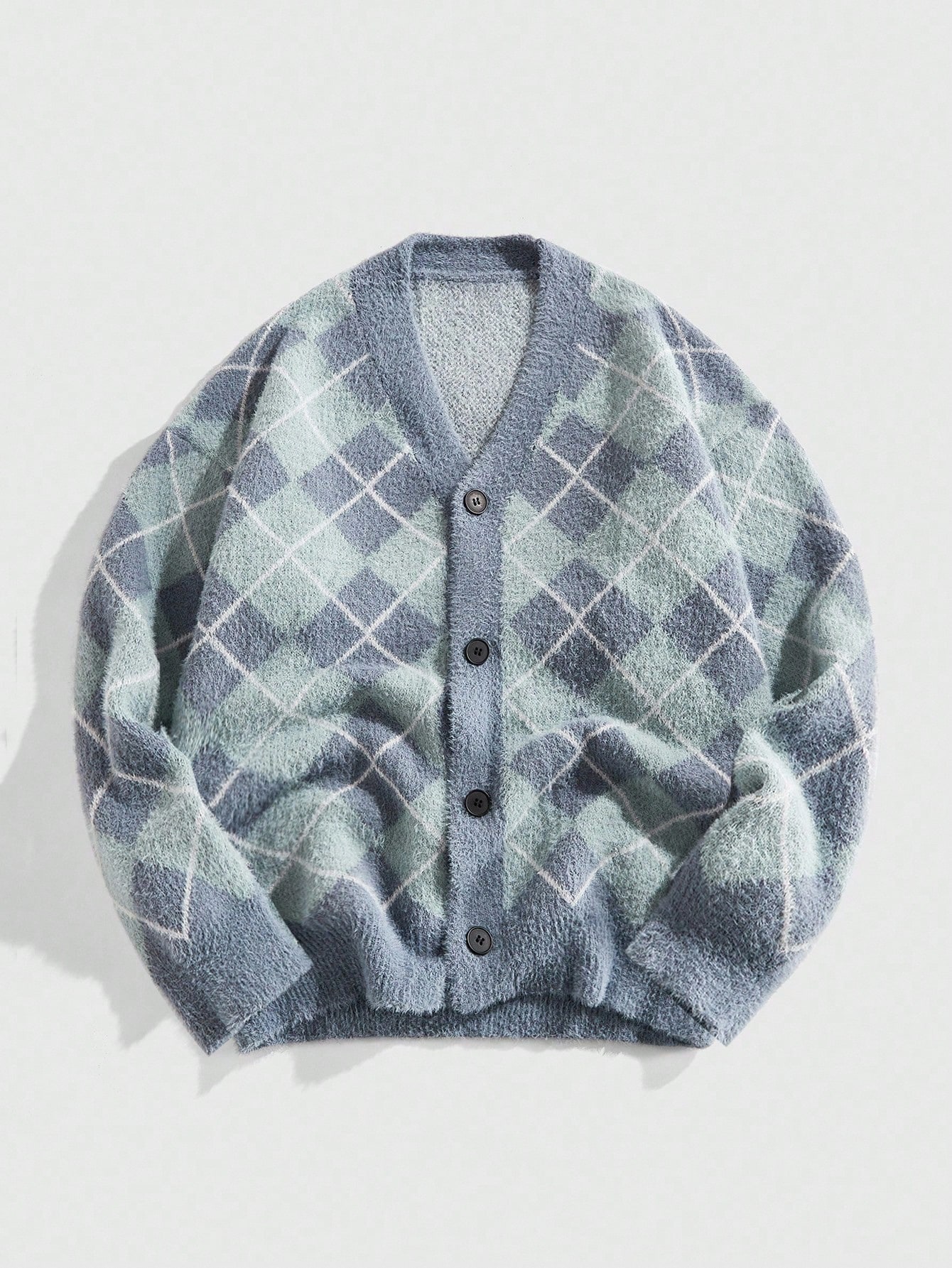 Prep Herren Rhombus Muster Langarm Einreiher Lässig Strickjacke, Herbst/Winter