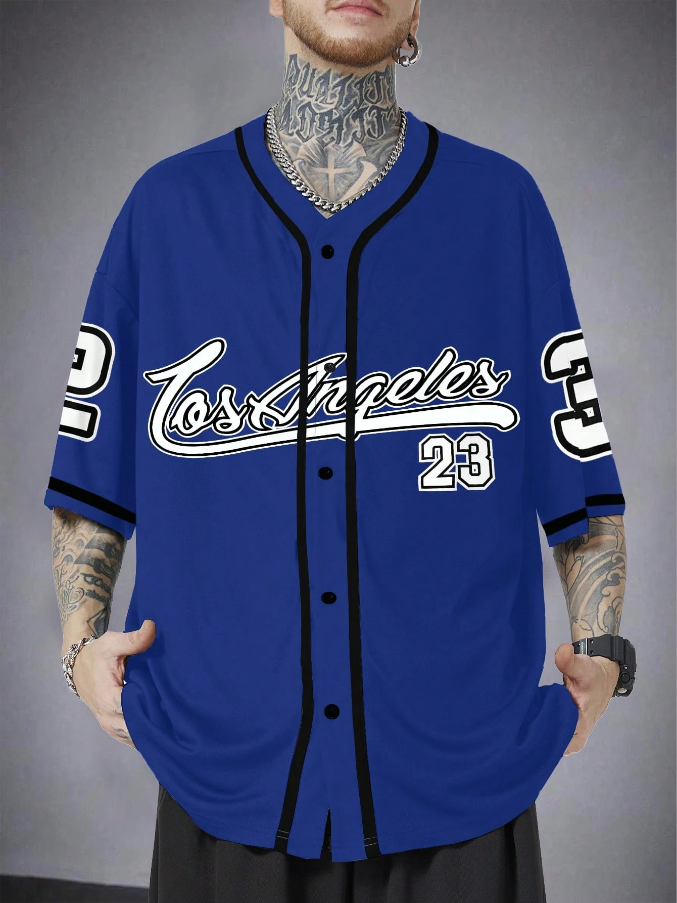 Prep Herren Einfachreihiges Hemd mit City-Logo-Muster und Kurzarm