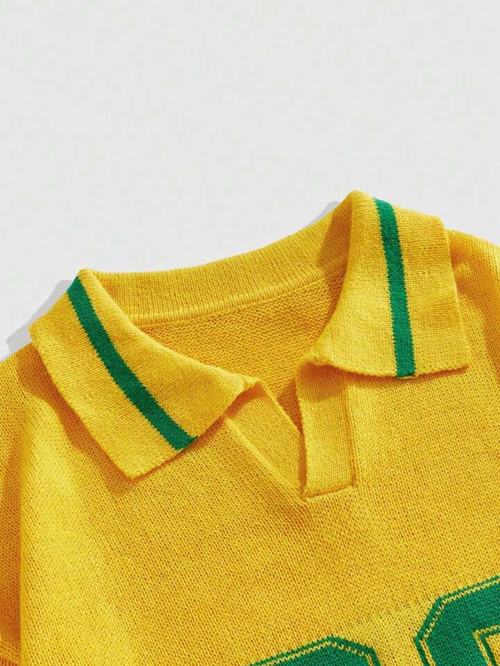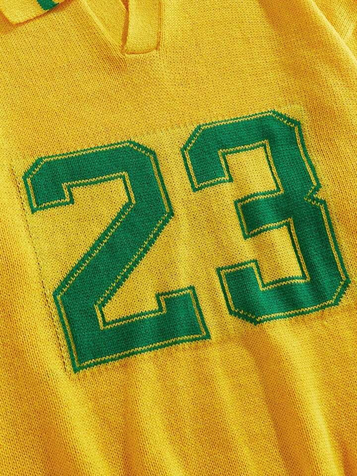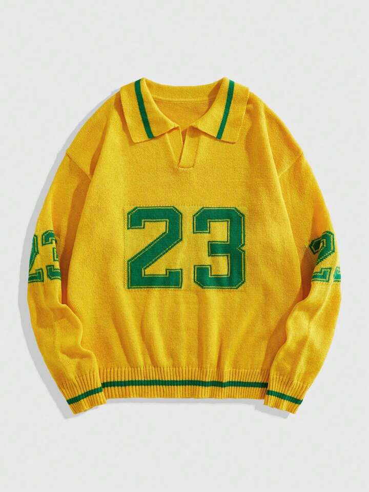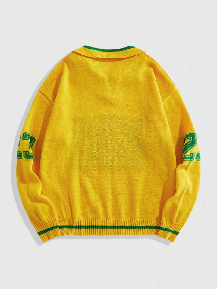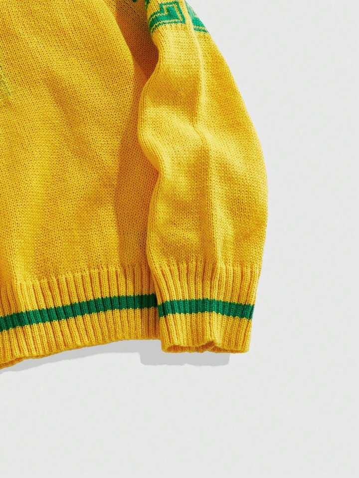 Prep Herren Jacquard-Strickpullover mit Umlegekragen, Fußballsport