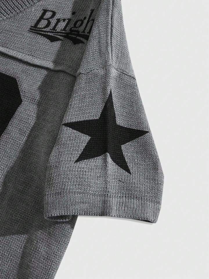 Prep Herren V-Ausschnitt Pullover mit Zahlenprint, sportlich gestrickt, Fußballstil, Straßenmode