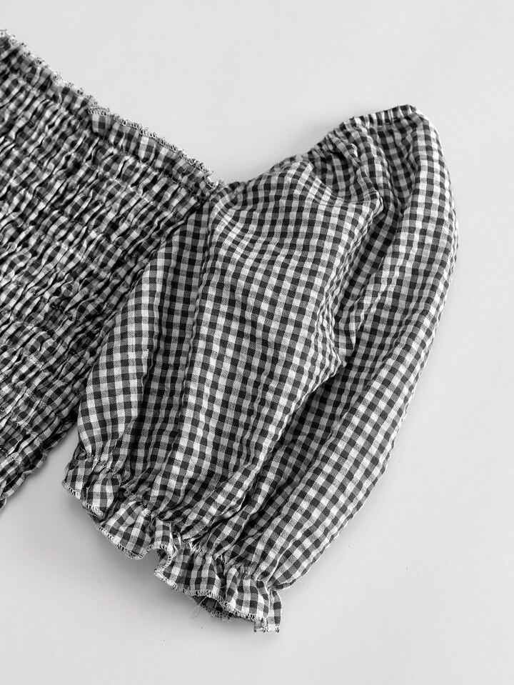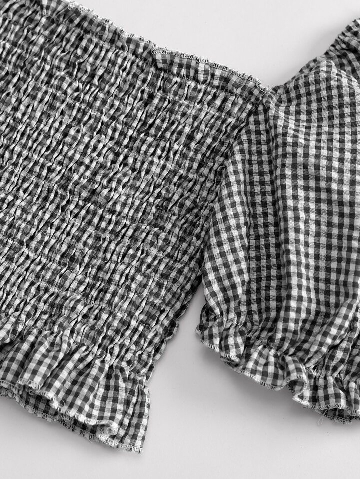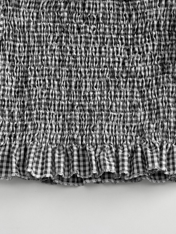 Puffarm geschürzter Top mit Rüschen-Saum Gingham Peplum