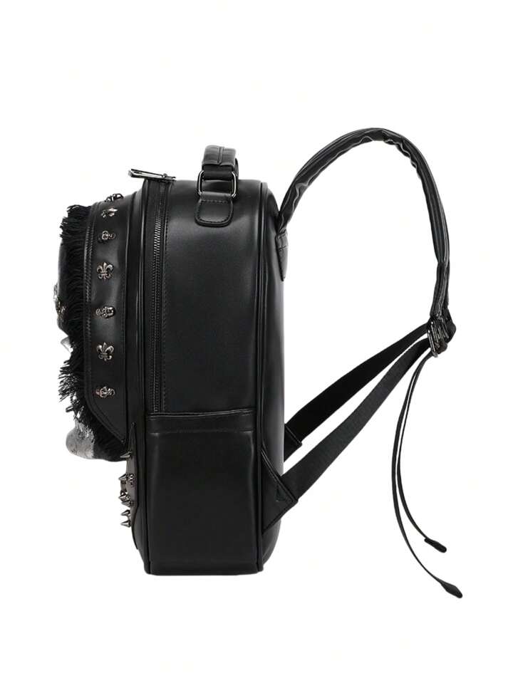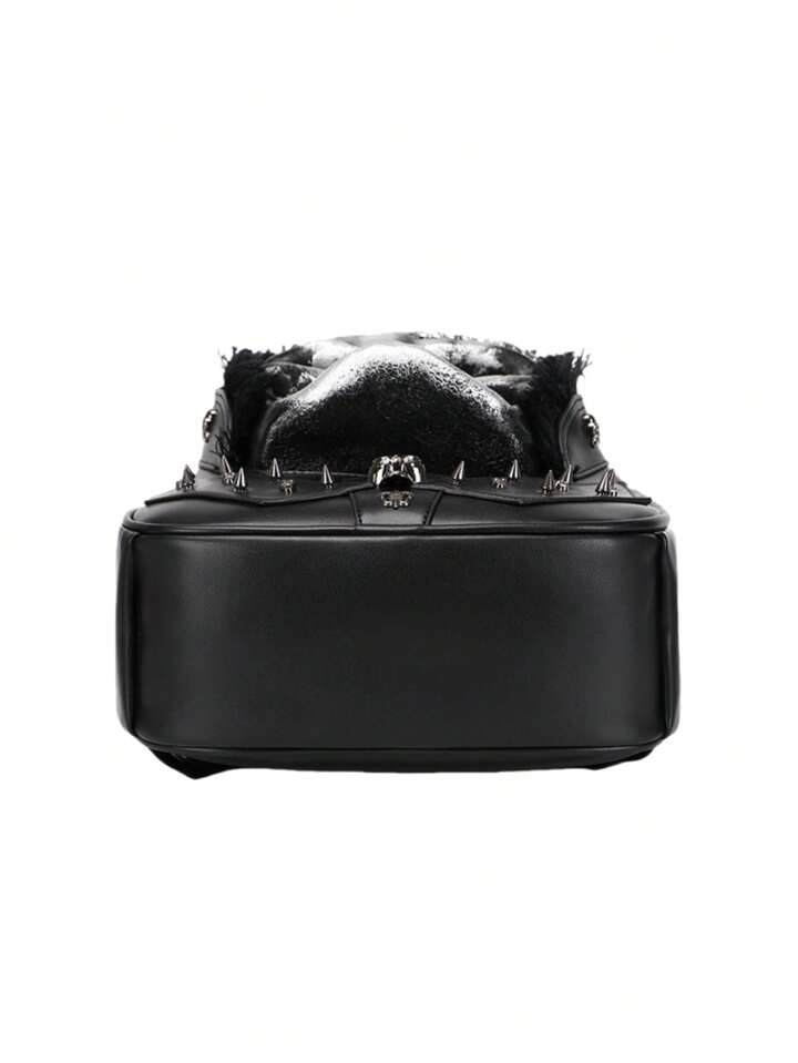Punk-Stil 3D Totenkopf Rucksack mit Haaren und Nieten-Totenkopf Metall-Dekoration, Halloween Rucksack, Schule, Halloween Taschen, perfekt für Faschingsparty, Halloween Mode & Gothic Mode