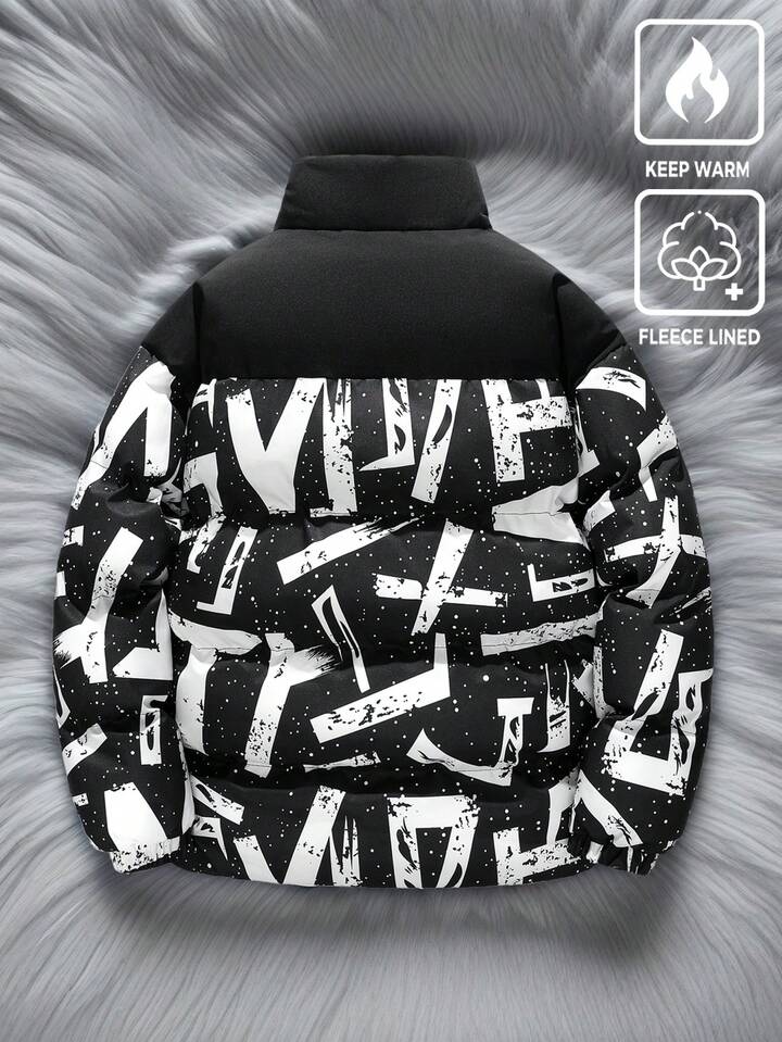 QY503+1 Herren modischer bedruckter Wintermantel mit Reißverschluss