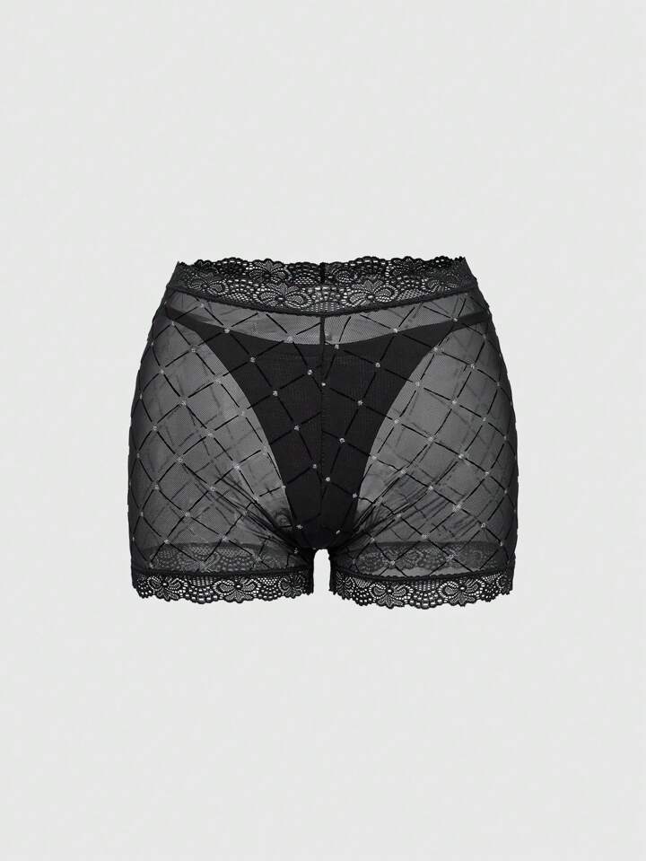 ROMWE Avant 2 Stücke modischer Damen Slip-Set mit Diamantgitter- und Stern-Verzierungen sowie Spitzeneinsätzen: nahtlose Slips & String