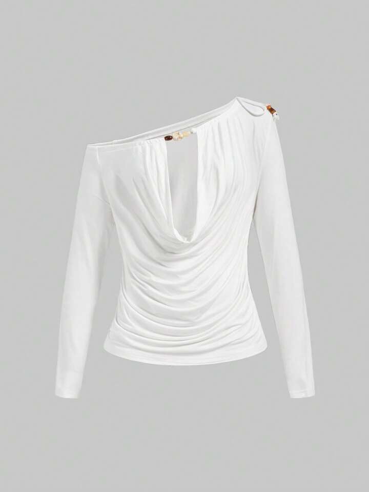 ROMWE Avant Locker sitzende Frauen Bluse mit Perlenbesatz und Rundhalsausschnitt