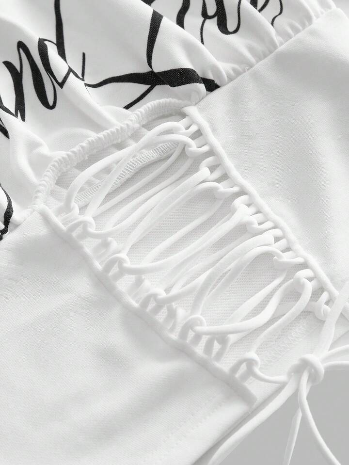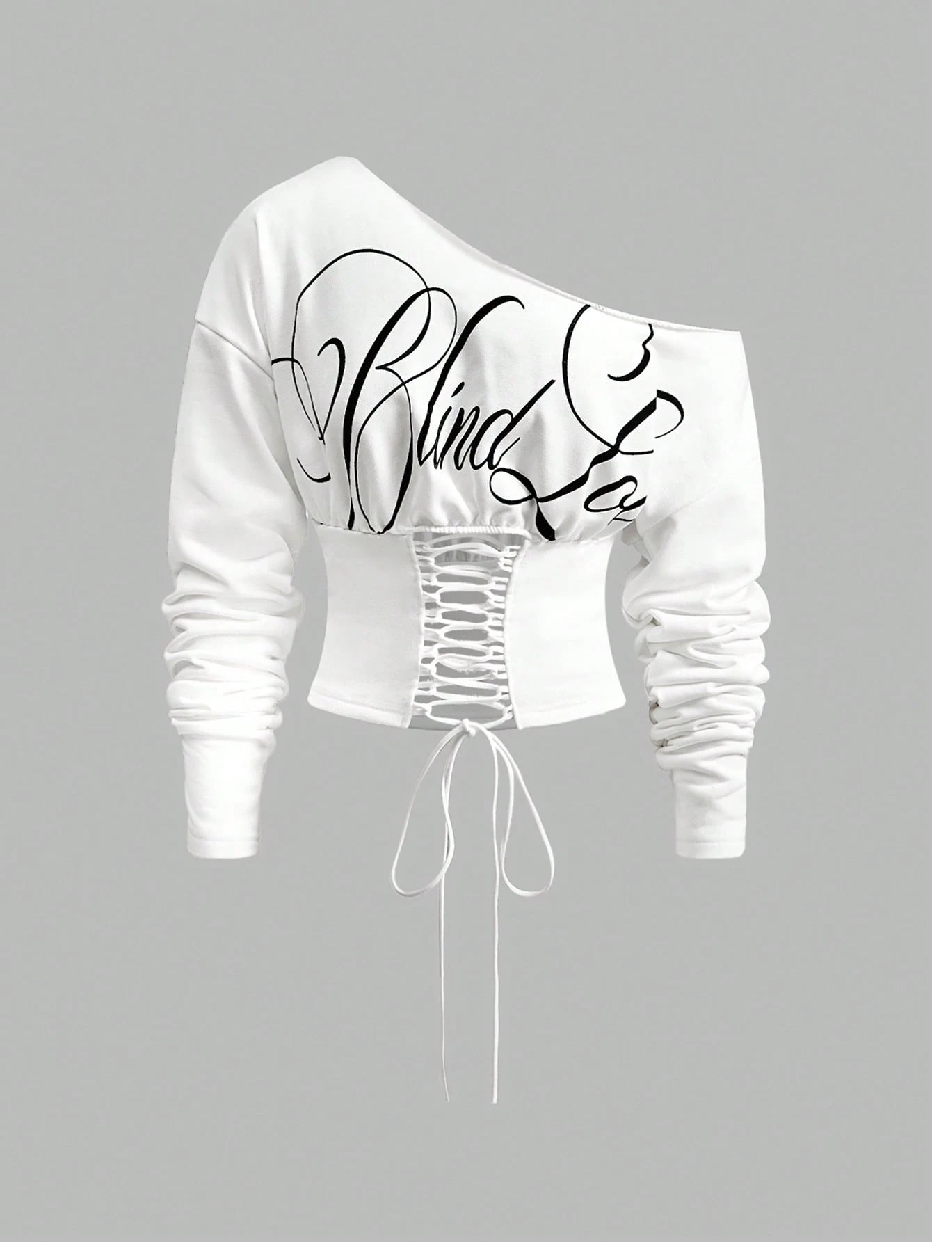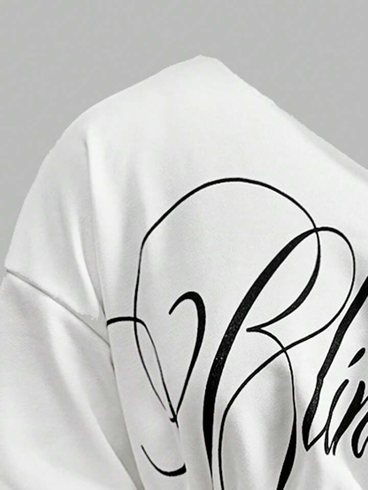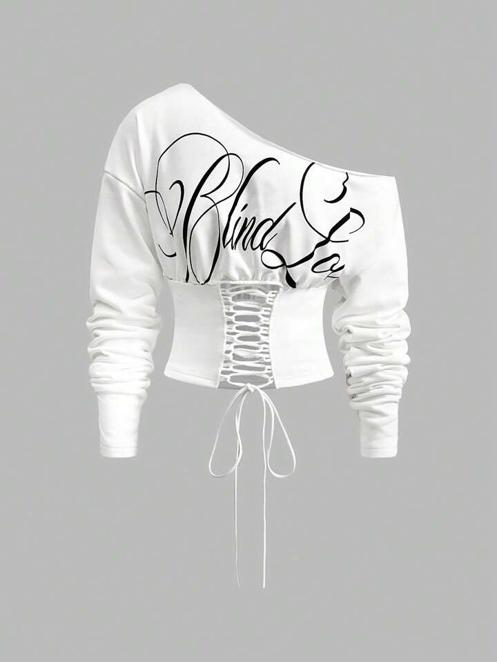 ROMWE Avant Lässiger Streetwear Grafik Schräg Schulter Kurz Loose Sweatshirt