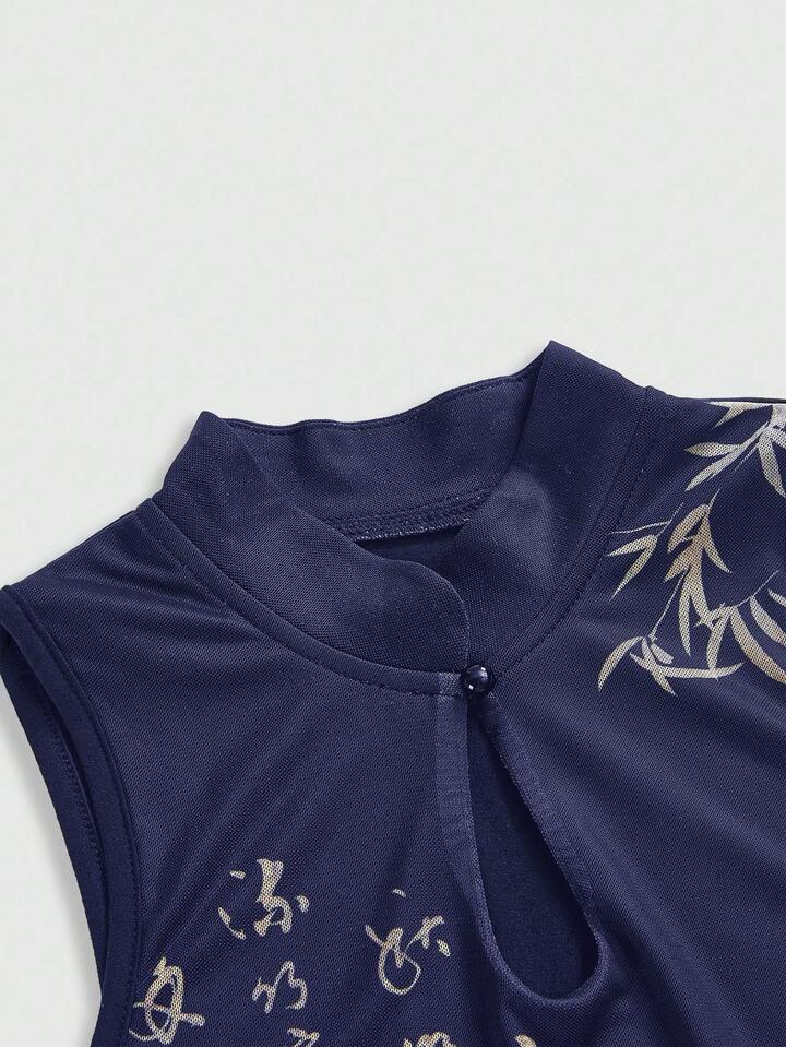 ROMWE Avant Chinesischer Stil Tiger & Bambusblatt Kalligraphie Muster Damen Trägershirt