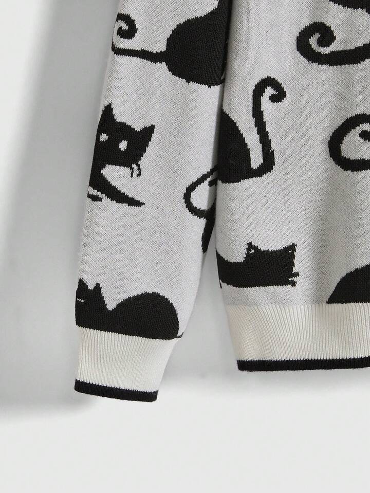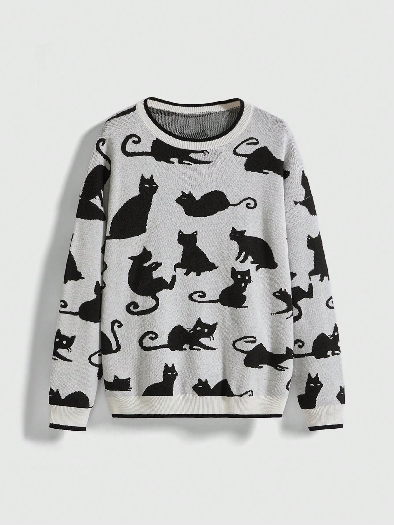 ROMWE Avant Süßes Katzen Muster Locker Lässiger Damen Pullover