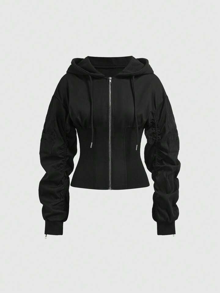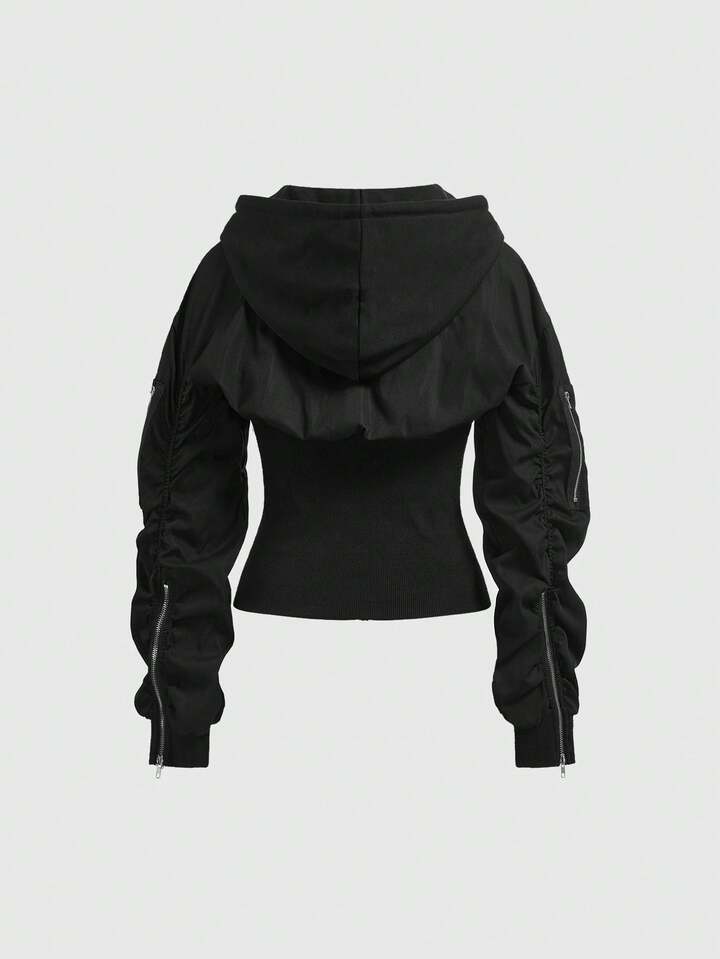 ROMWE Avant Modische avantgardistische sexy Nylon-Strick-Taillenmieder Bomberjacke