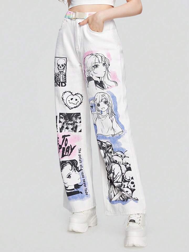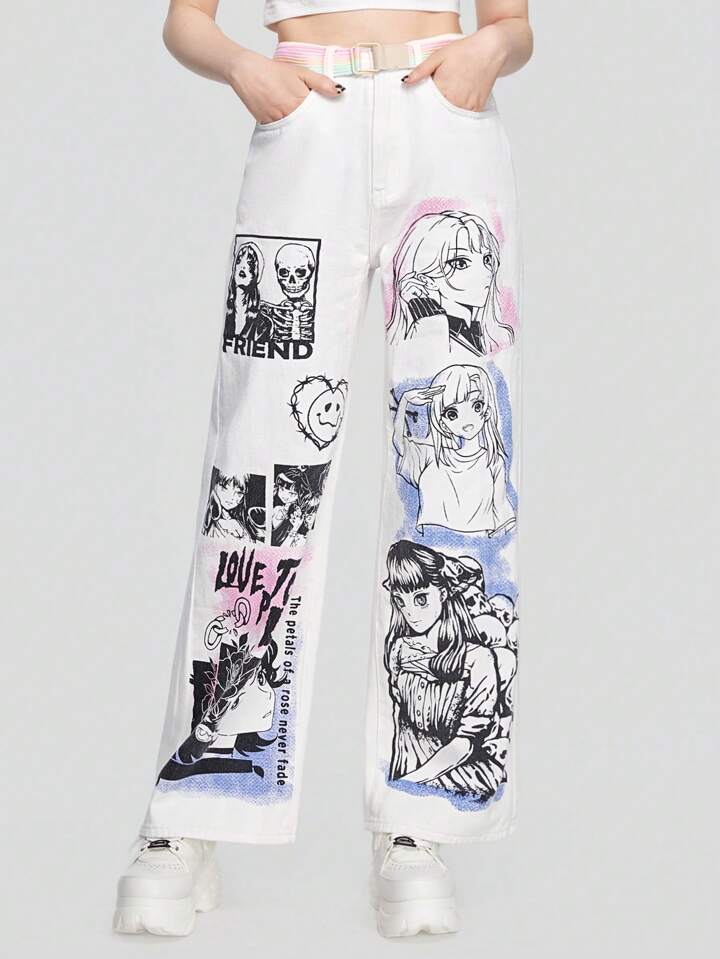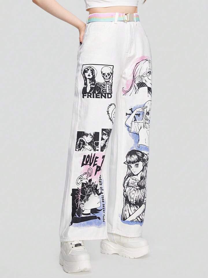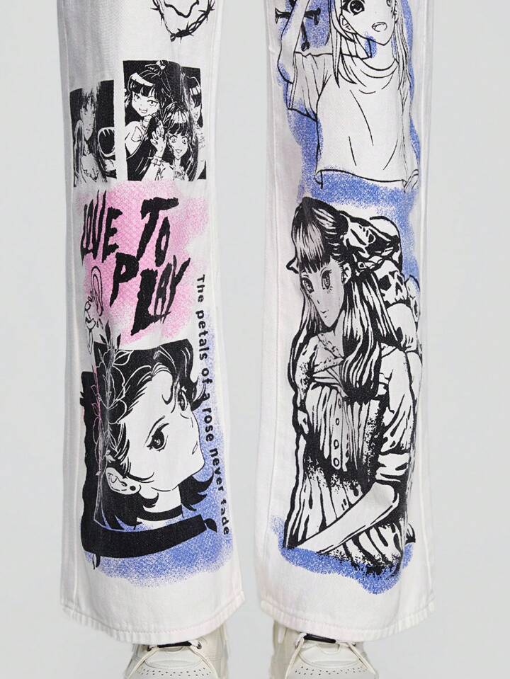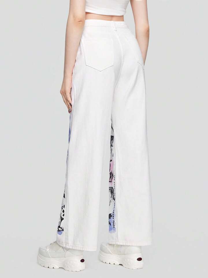 ROMWE Avant Jeans mit Figur Grafik, breitem Beinschnitt