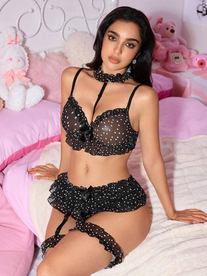 ROMWE Avant Französisches Polka Dot Sexy Unterbüstler-Set ohne Bügel