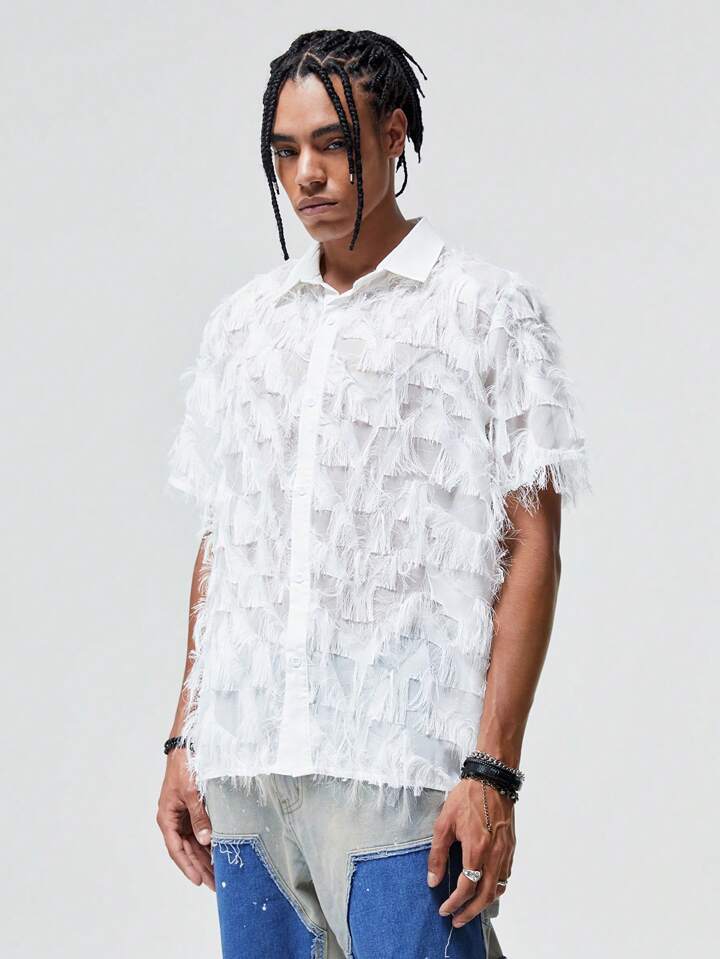 ROMWE Avant Männer Shirt mit Quasten Saum, Knopf