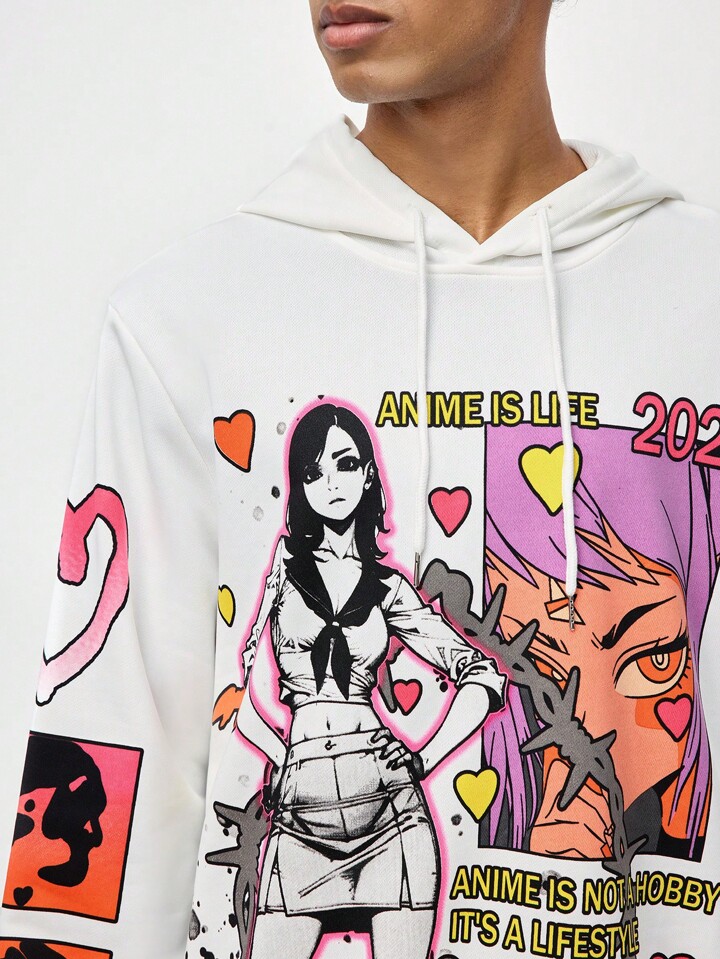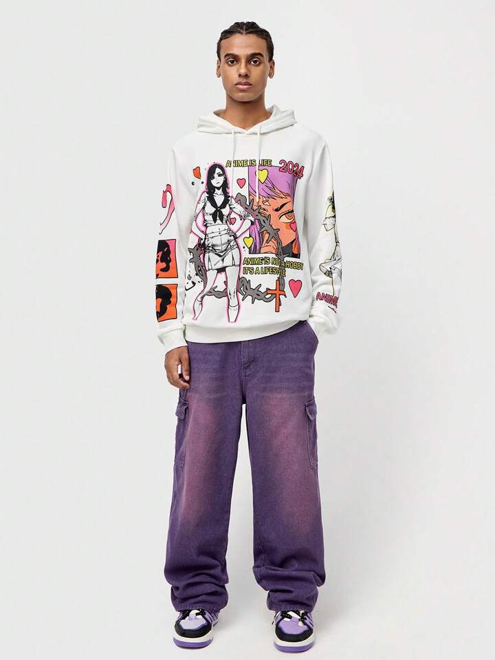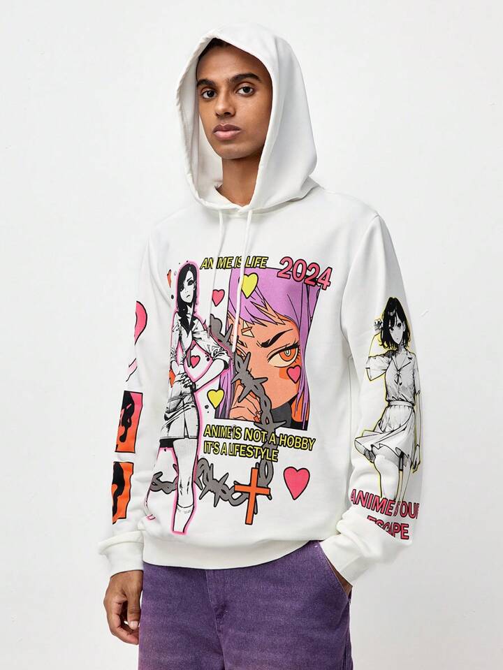 ROMWE Avant Herren Kapuzenpullover mit Kordelzug und Frontdruck, Lässig Alltagskleidung, Schule