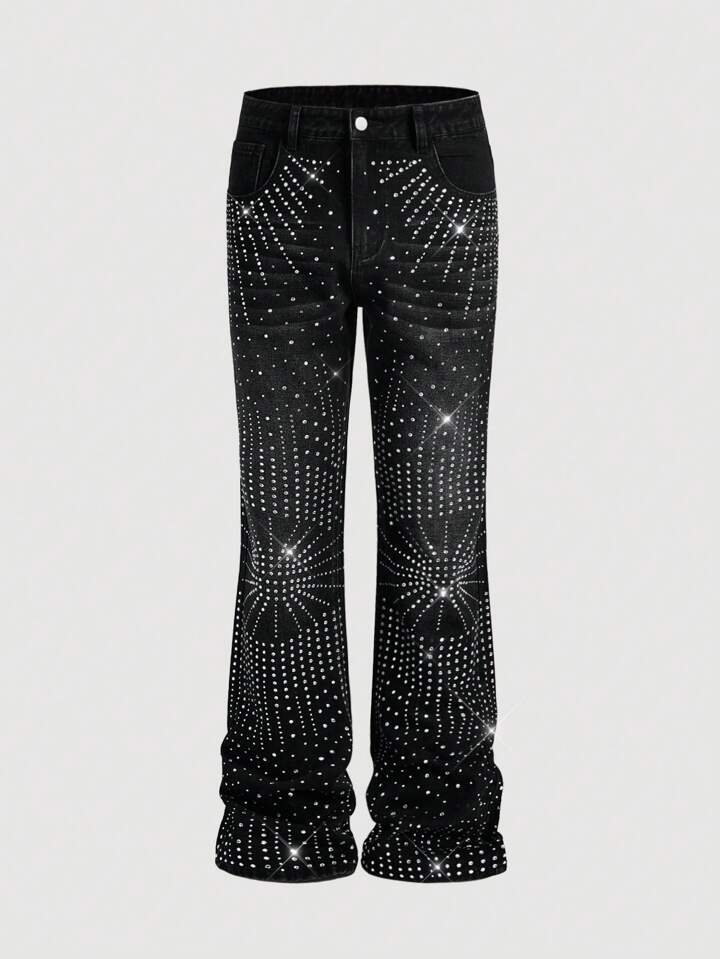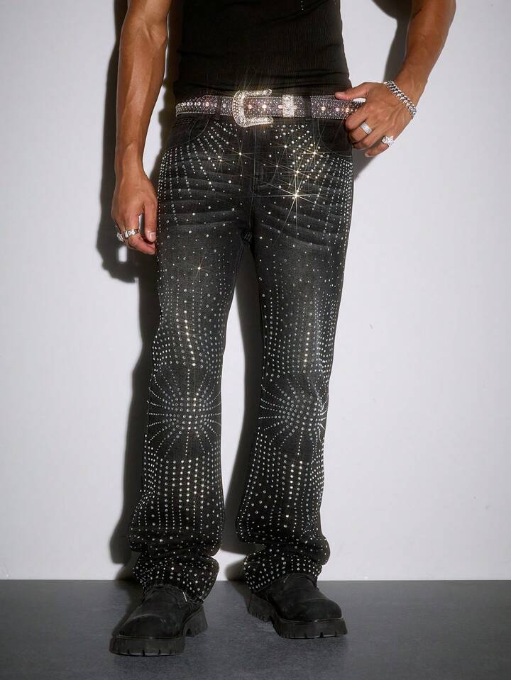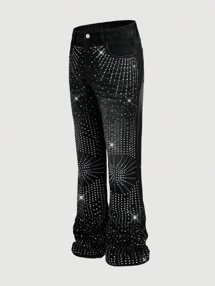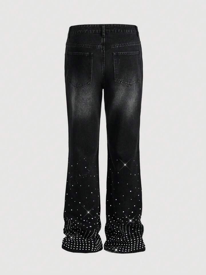 ROMWE Avant Herren Jeans mit Rinesteinverzierung und gestaffeltem ausgestelltem Bein