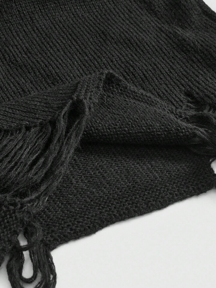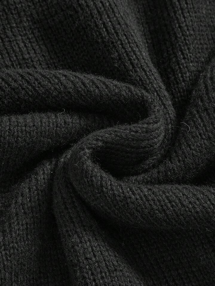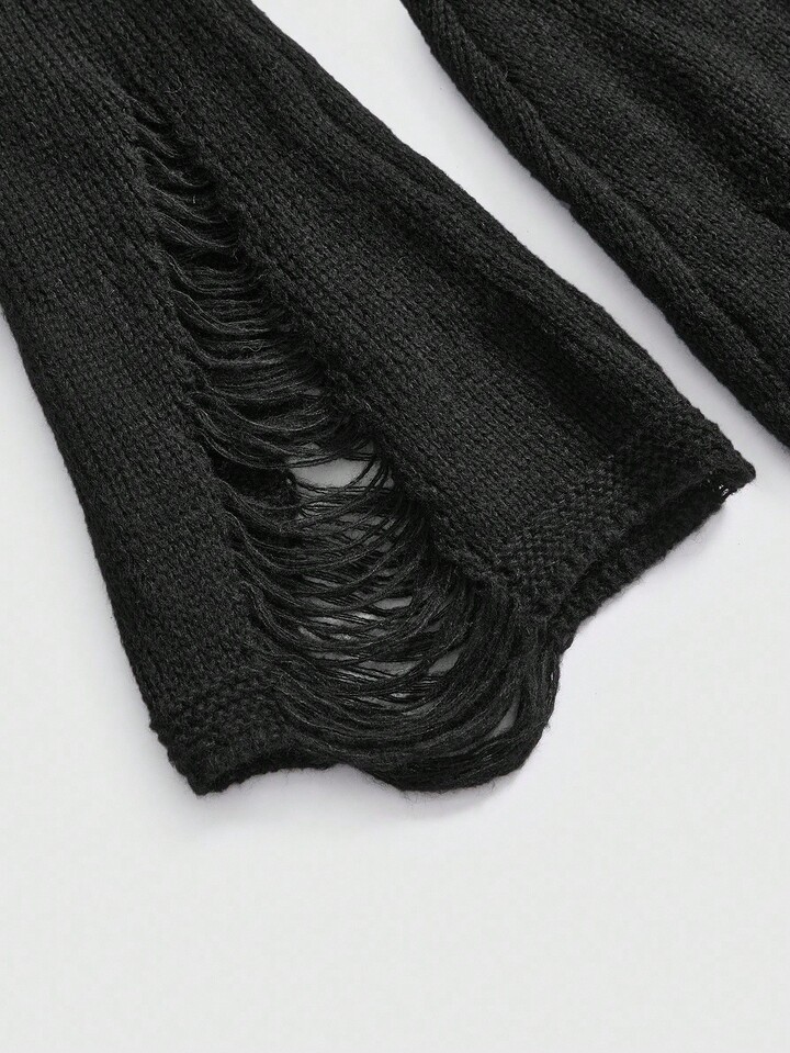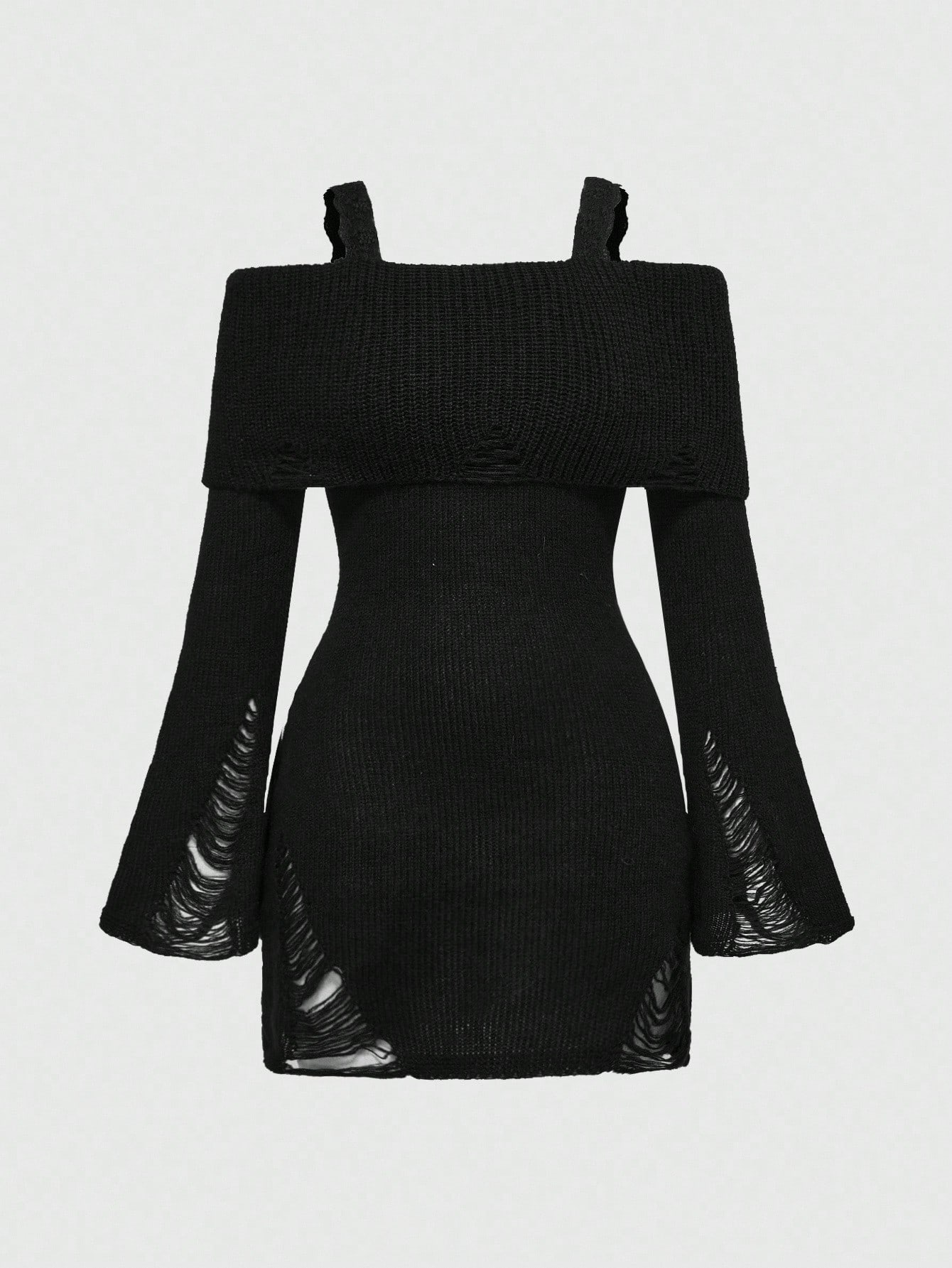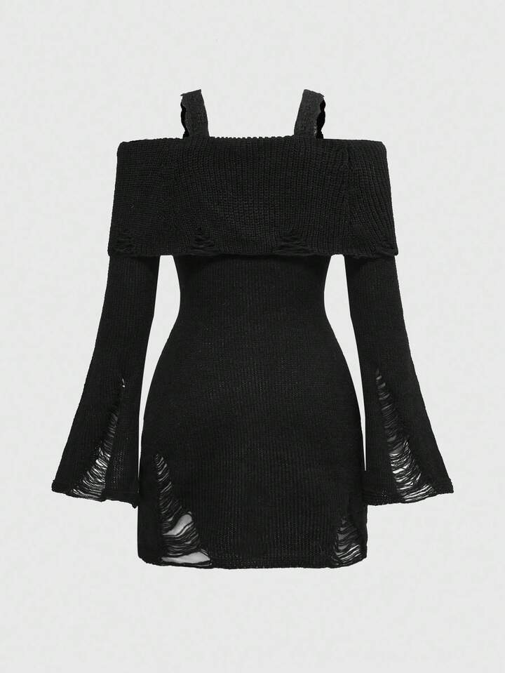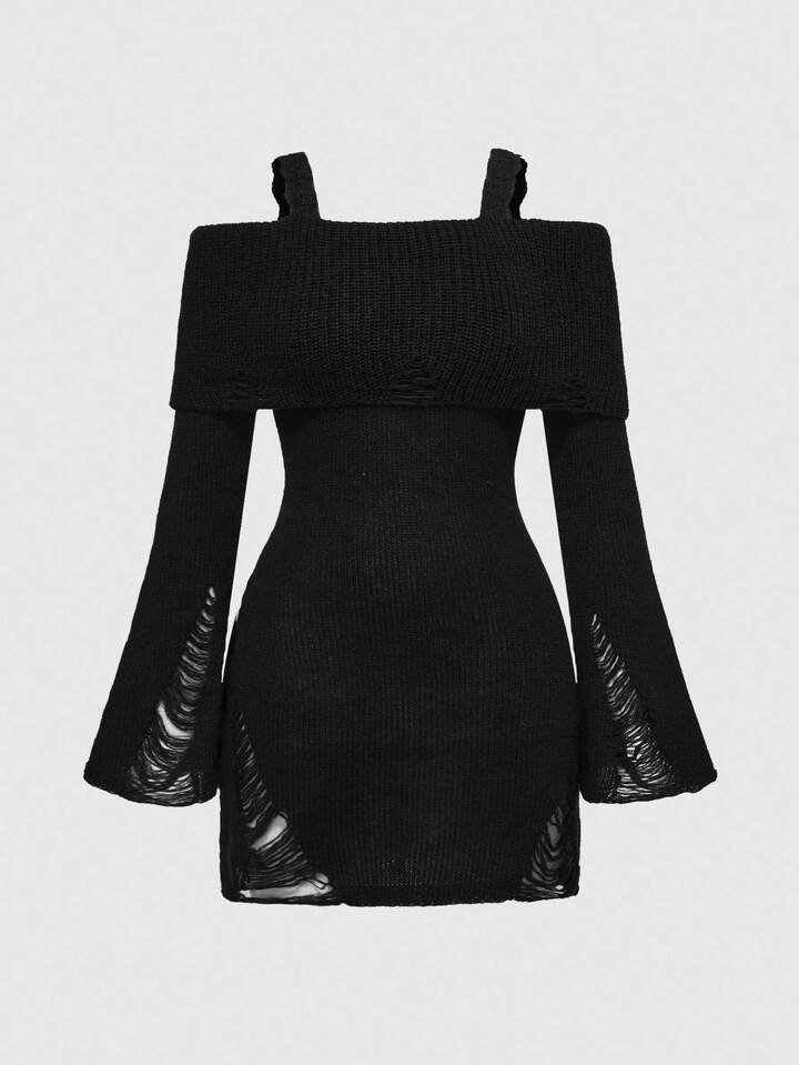 ROMWE Avant Off-Shoulder Spitzen-Patchwork-Distressed-Strick-Figurbetontes Damen-Sweaterkleid