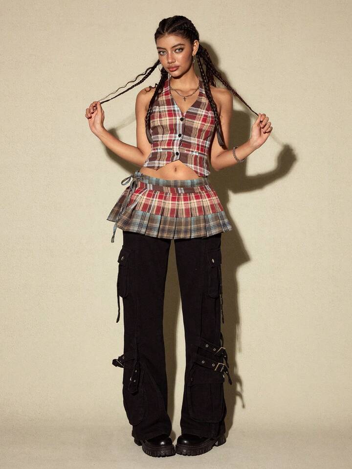 ROMWE Avant Kariertes Trägertop mit Neckholder für Damen