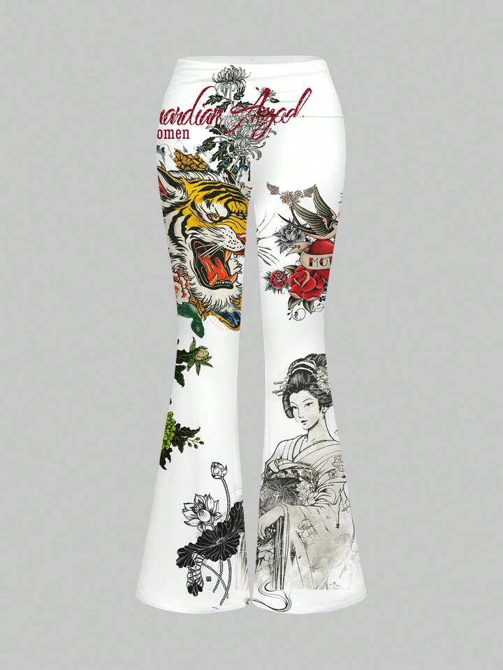 ROMWE Avant Sexy Slogan Crop Top & Weite Hose mit niedriger Taille 2-teiliges Set für Frauen