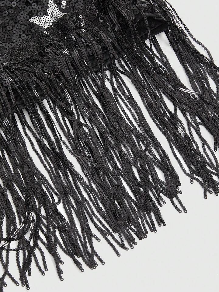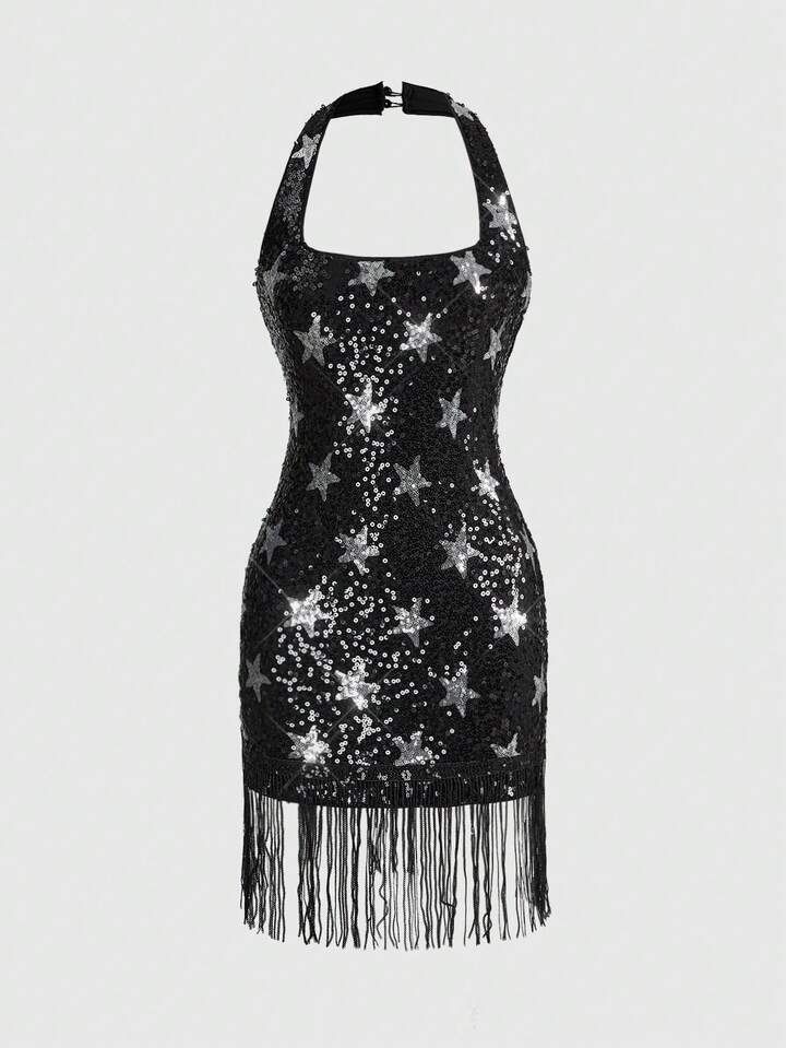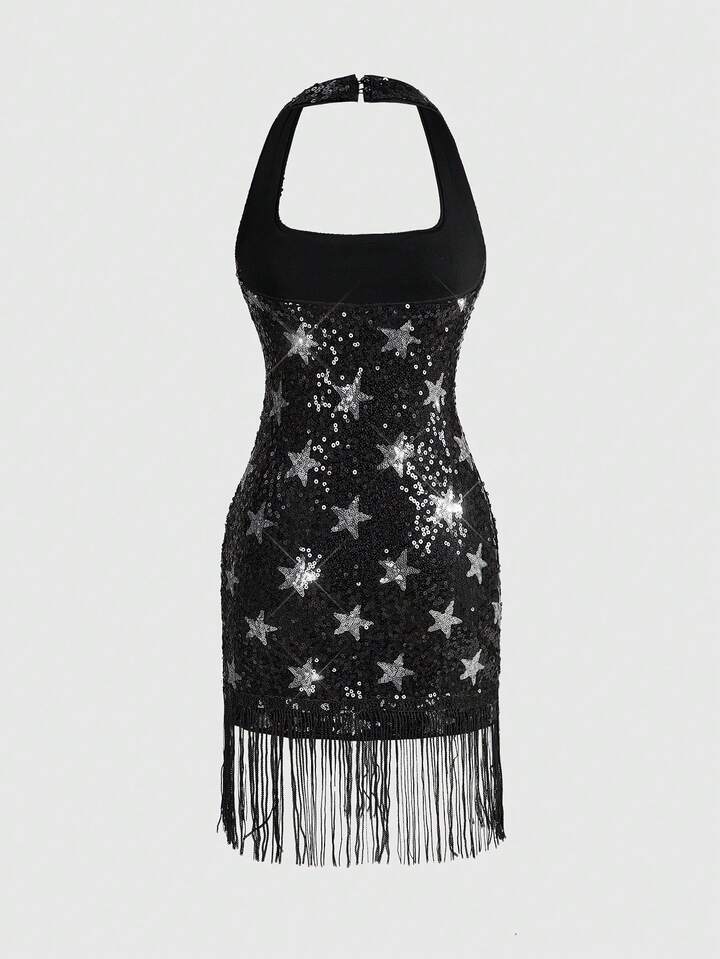 ROMWE Avant Sternförmige Pailletten Quasten Figurbetontes Mini-Kleid für Partys