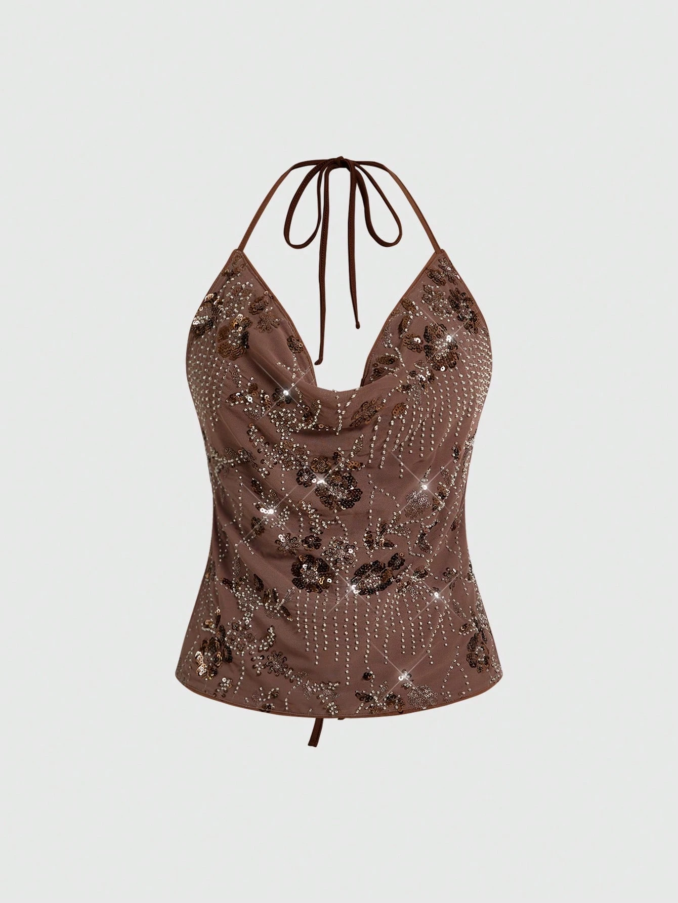 ROMWE Avant Urlaubsstil glänzende Pailletten Camisole mit drapiertem Ausschnitt in Braun