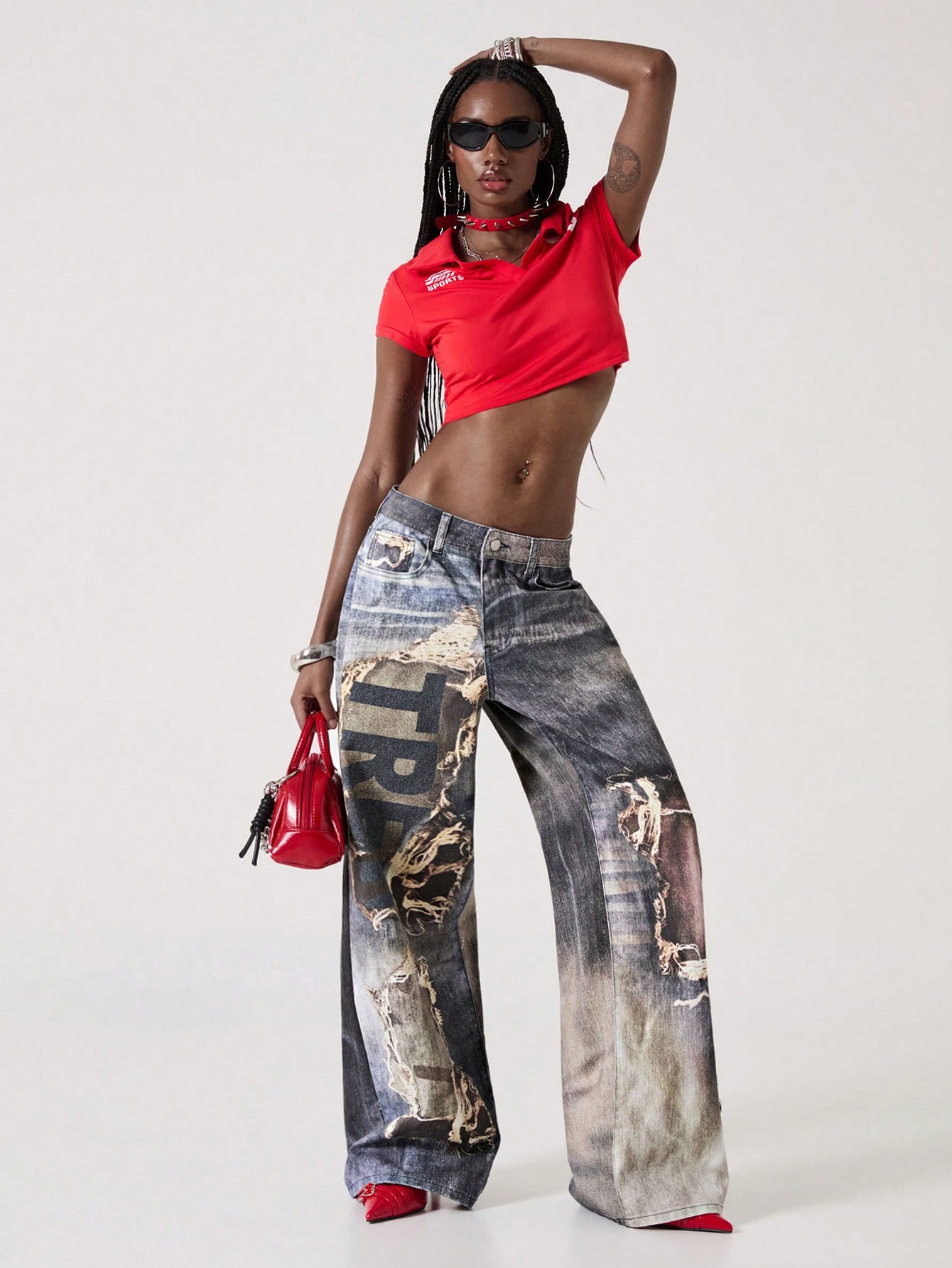 ROMWE Avant Damen Jeans mit Destroyed-Optik und Grafik-Muster, taillenniedrig, locker geschnitten, lässiger Streetwear-Stil