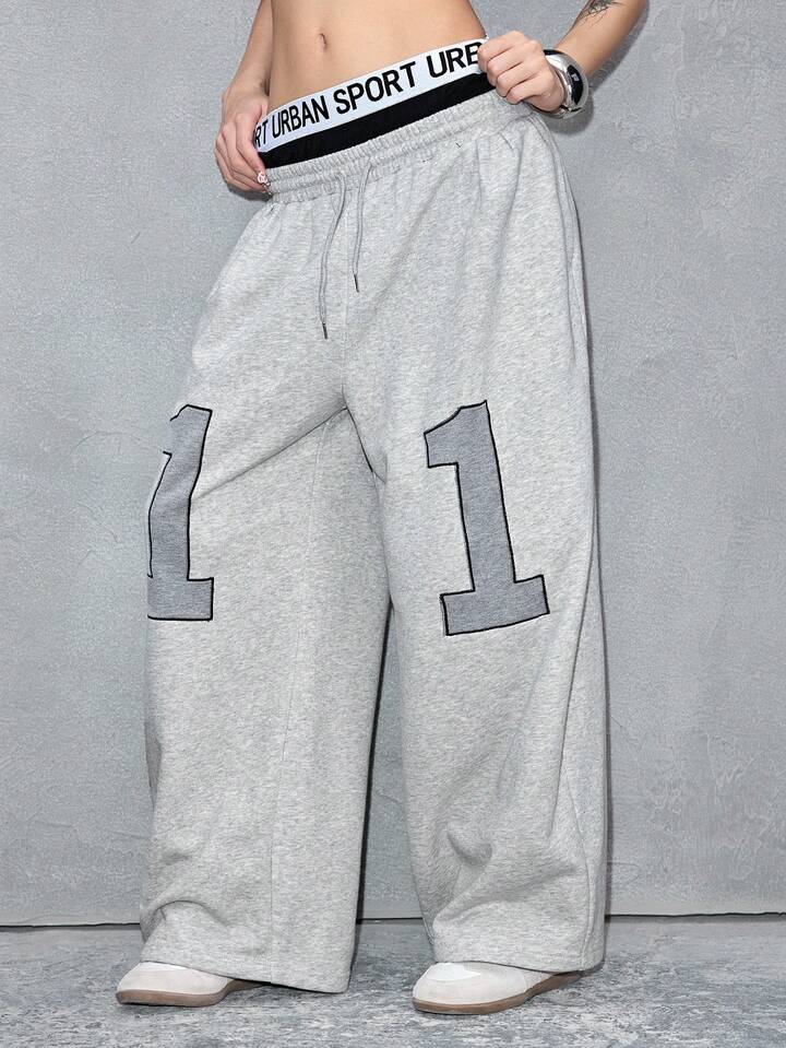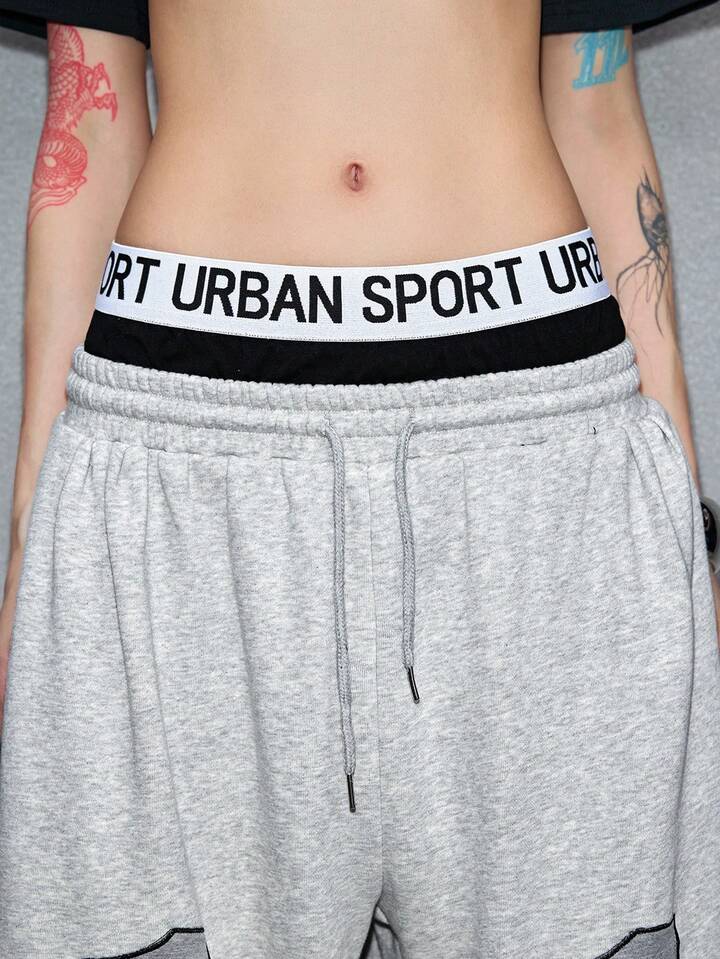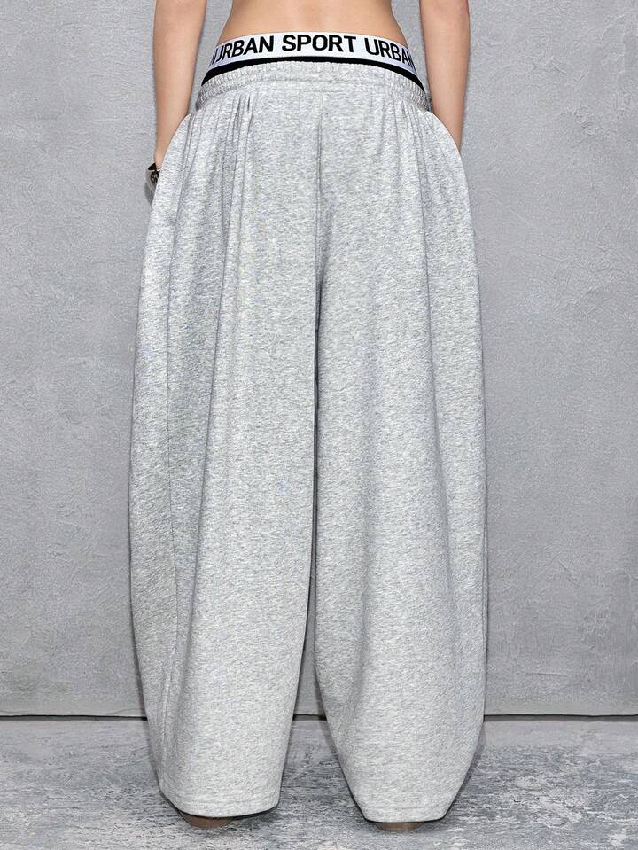 ROMWE Avant Damen Hose mit Buchstaben-Taillenbund, Kordelzug, weites Bein, Lässig