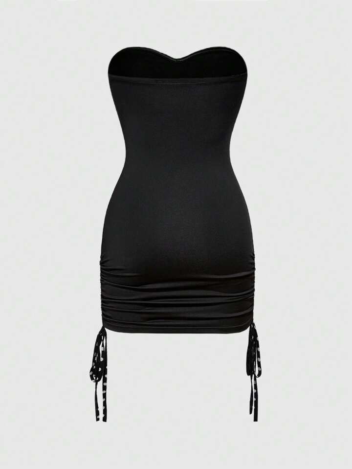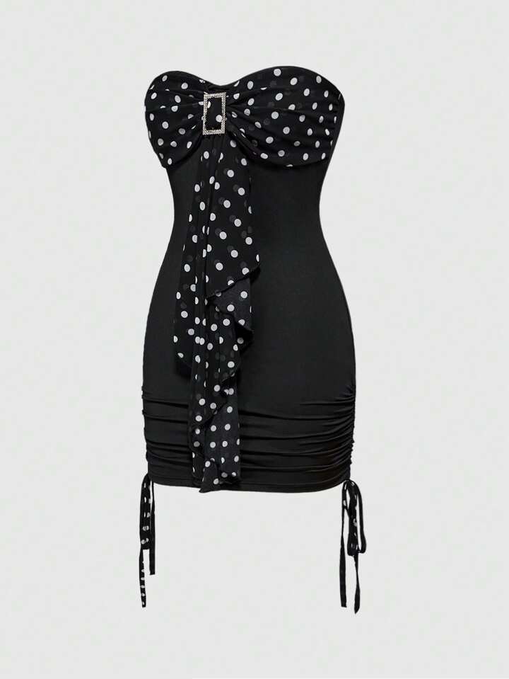 ROMWE Avant Damen Sommer Minikleid mit Polka Punkten, Schleife, Gatherungen und Kordel, Tube Kleid