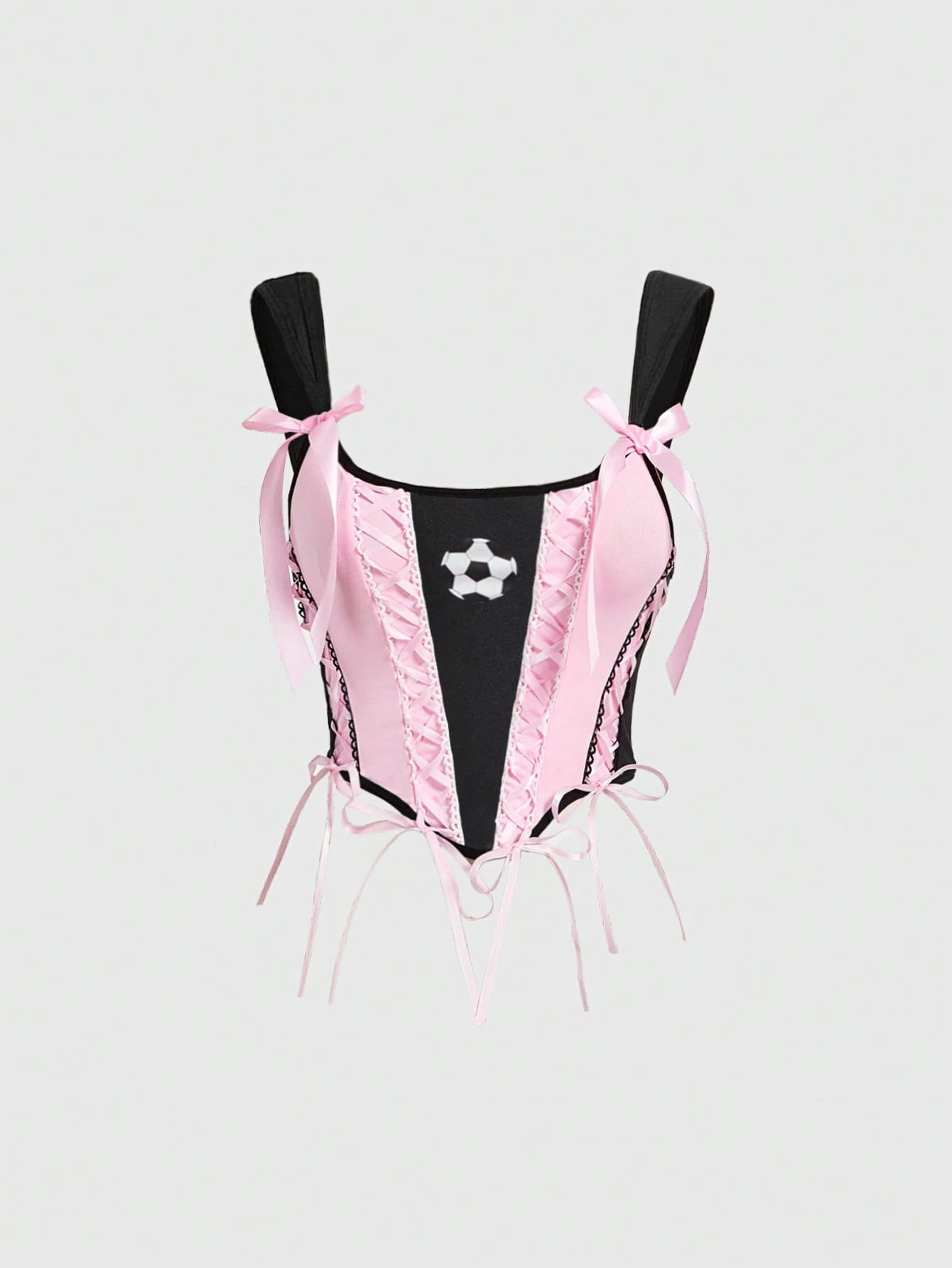 ROMWE Avant Damen Punk Y2K Fußball-Muster Schnürung Top