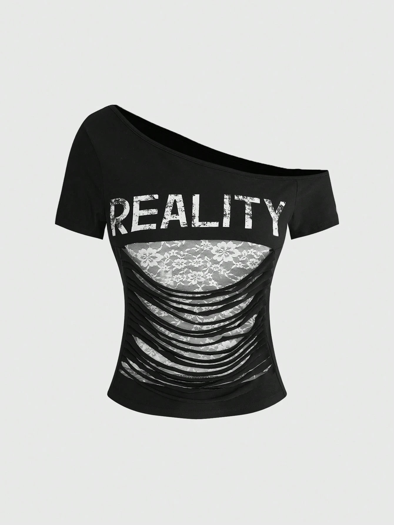 ROMWE Avant Damen Retro Avantgarde Spicy Girl Y2K 2 in 1 Spitze Patchwork Buchstaben Muster Crop Top