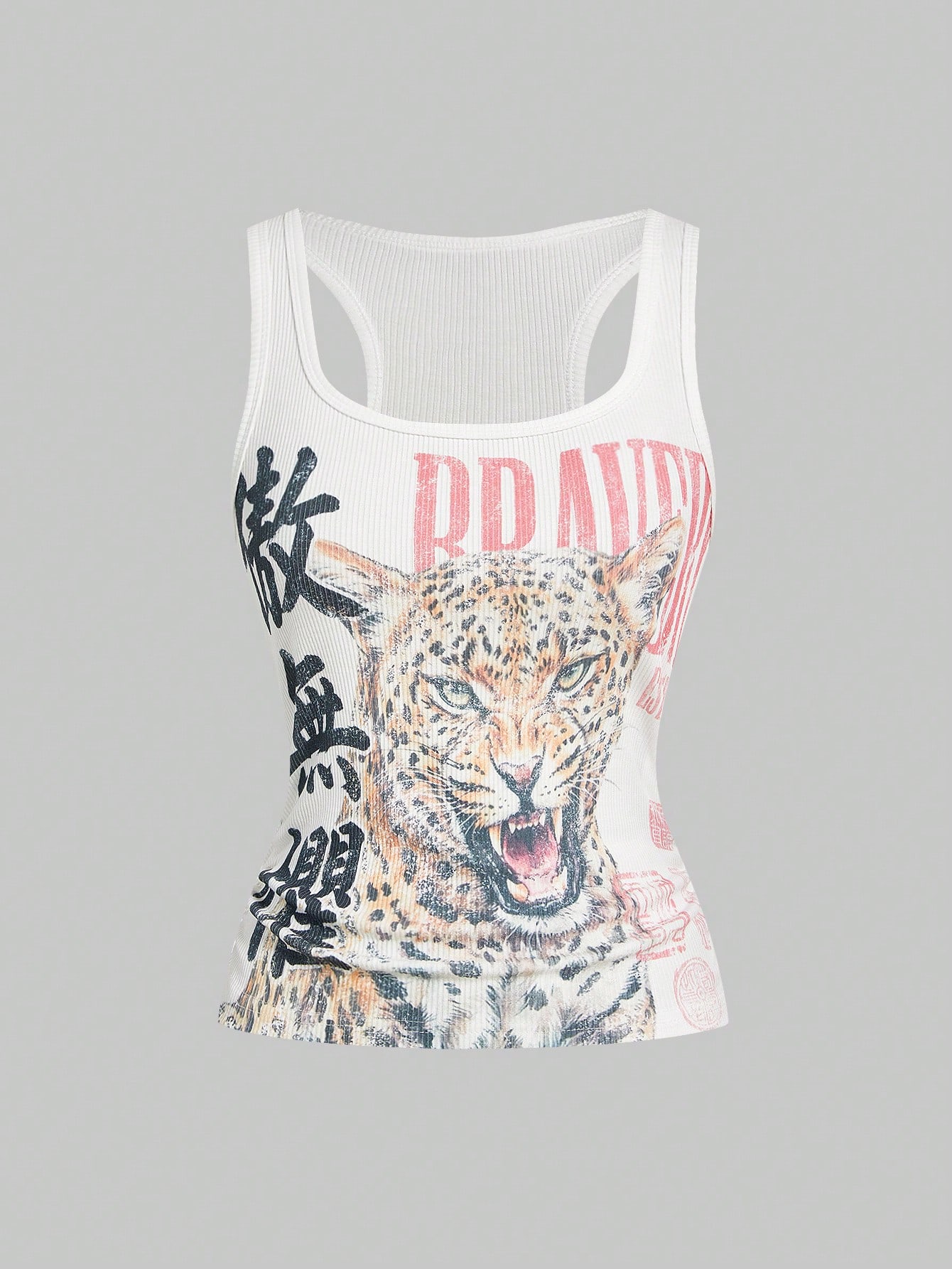 ROMWE Avant Damen Retro Chinesischer Stil Leopard Chinesisch & Englisch Muster Allround Trägershirt, vielseitig